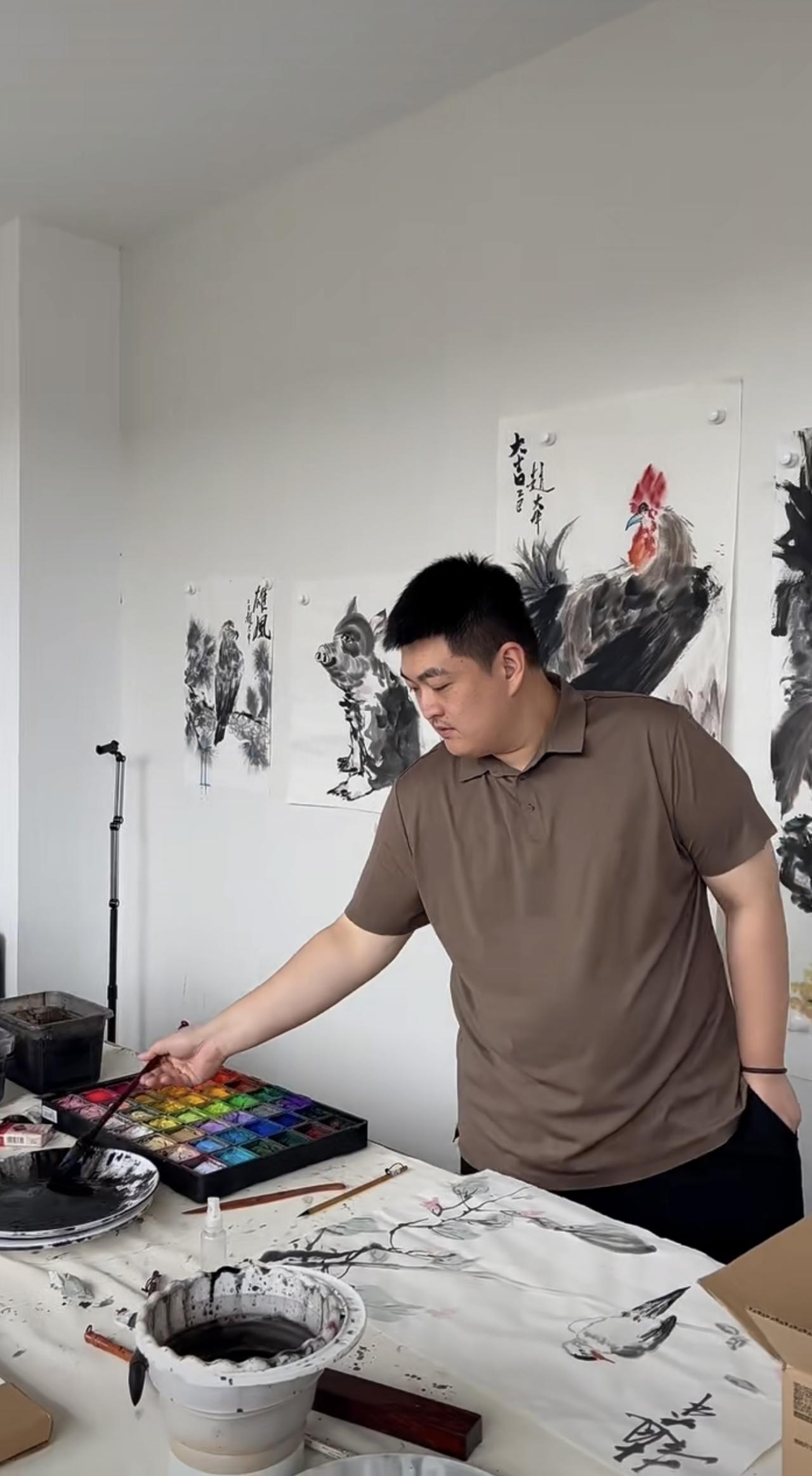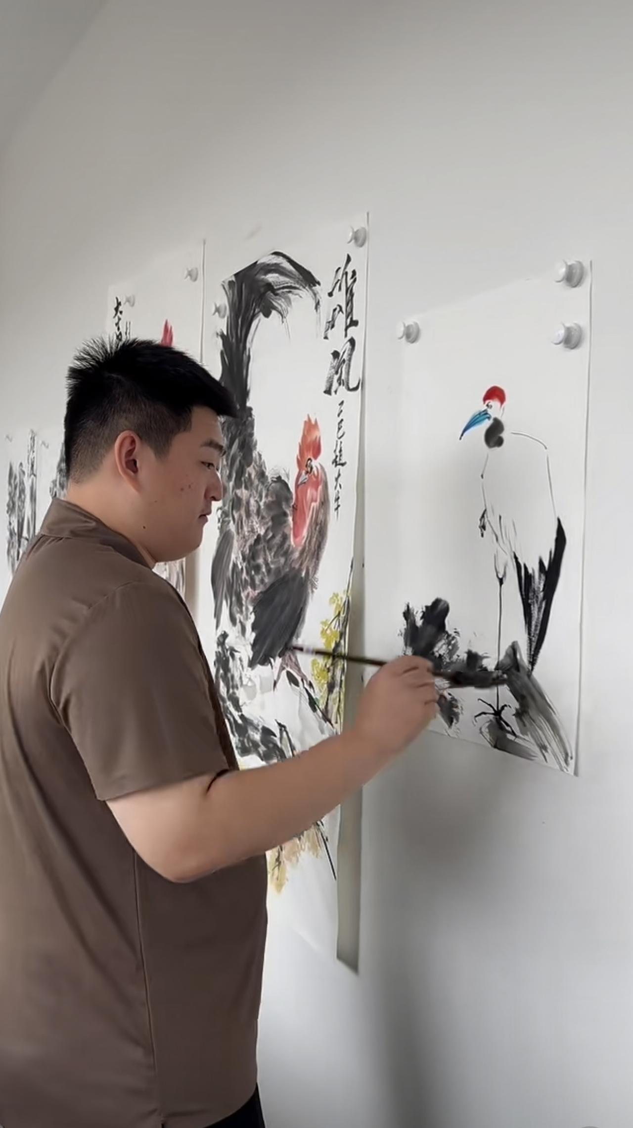 赵大牛的旧照,昔日,赵本山的儿子绘画,单手插兜,轻松拿捏。 赵大牛在星二代里面