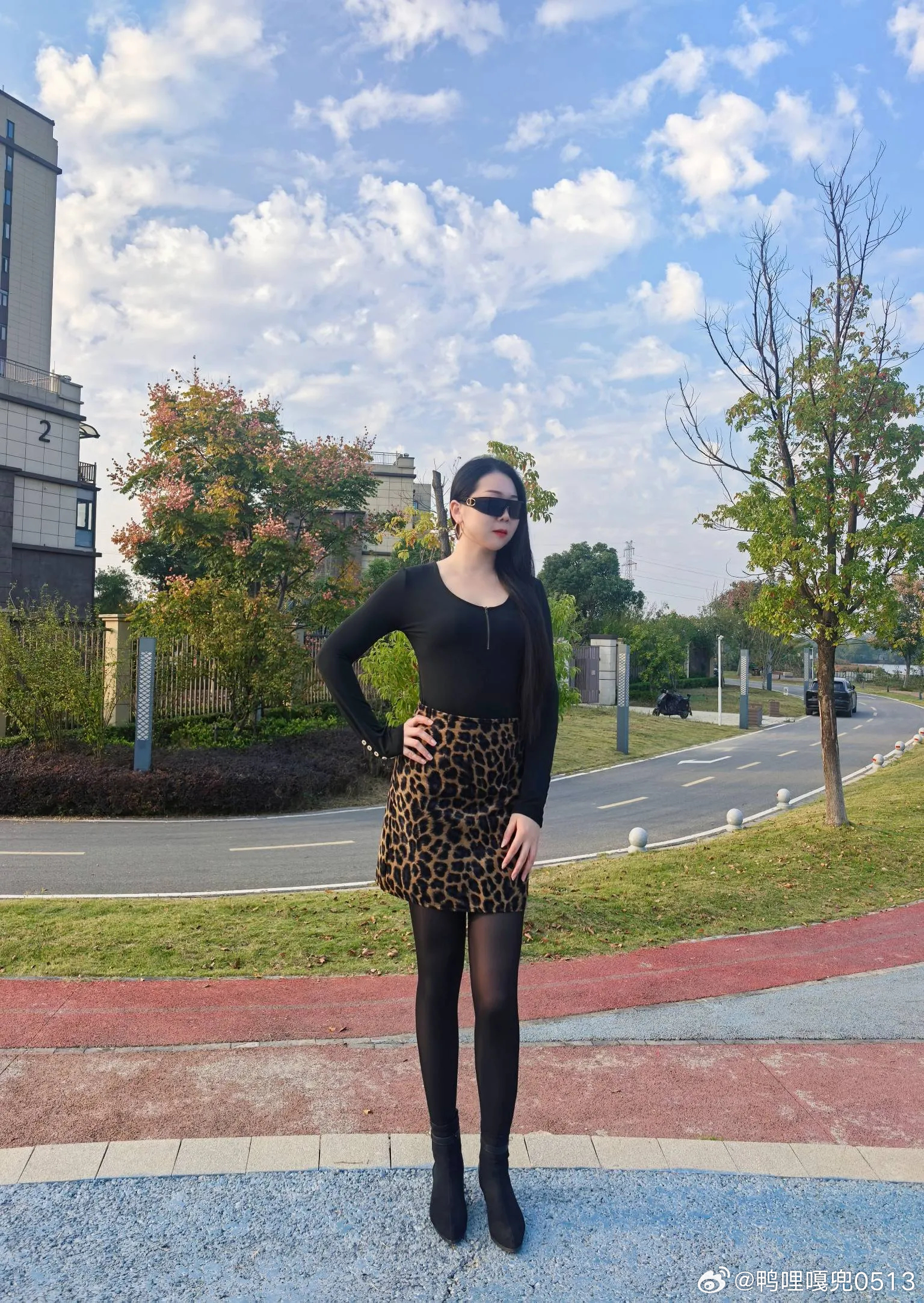 OOTD时尚穿搭今天穿什么ootd 黑色长袖衬衫搭配豹纹短裙真的太有韵味啦