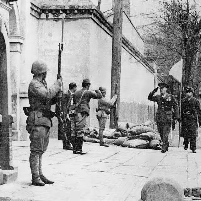 目睹阿什赫斯特上校一边行走一边行军礼,向日军投降的场景,让人内心犹如打翻了五味瓶。投降,有时是无奈之选,却也意味着尊严的受损。 日本偷袭珍珠港之后,阿什赫斯特上校的投降显得那般悲凉又无奈。
