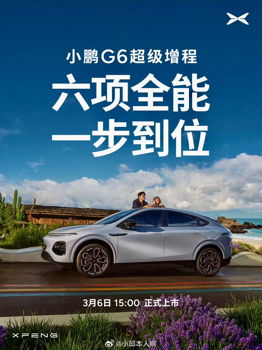 小鹏G6超级增程版将于3月6日15:00上市。车型搭载鲲鹏超级电动体系,综合续航1704公里,纯电续航430公里,采用800V+5C高压平台,12分钟可补充续航314公里。
