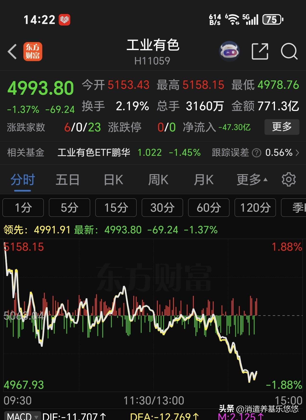 黄金跳水了有色金属也跟着走低,有色金属波动太大,这两天反弹力度太小,本人啊仓位不