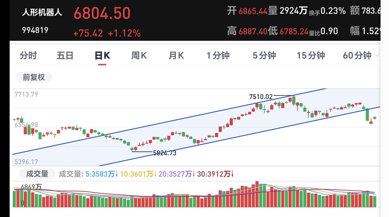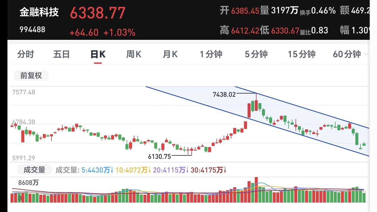 基金:弱反弹的情况下可不可以伸手 日本和韩国市场今天上涨,日本上涨了2.38%,韩国上涨了11.22%,上涨幅度都不小,特别是韩国的上涨幅度比较大。 香港市场今天是涨跌不一,恒生指数上涨了0.72%,国企指数上涨了0.10%,恒生科技指数下跌了0.49%,涨跌幅度都不大。 我们再来看一下盘面的情况,三大指数现在都在小幅度回落当中,两市累计成交20046亿,相比于昨天同期缩量了1%,说明上午上涨的过程当中缩量,下午回落的过程当中放量,上涨3800多家下跌1500多家,上涨家数还是多于下跌家数,涨停86家,跌停五家,跌停家数并没有增加,主力资金净流入205亿,下午开盘之后主力资金也是在净流出。 整个市场上涨幅度最大的三个板块是:电网设备板块,可控核聚变板块,双创50板块,下跌幅度最大的三个板块是:黄金板块,稀土永磁板块,交通运输板块。 整个市场主力资金净流入最多的三个板块是:高端制造板块,大科技板块,电子板块,主力资金净流出最多的三个板块是:有色金属板块,军工板块,黄金板块。 恒生科技板块今天继续下跌,日线级别现在处于下跌通道中,距离下跌通道的下轨线比较近,持有的人可以继续持有,进场的人需要耐心等待。 恒生科技板块前段时间下跌跌破了周线级别上涨通道的下轨线,现在是处于有效破位当中,想进场的人耐心等待日线级别上涨突破下跌通道上轨线的时候,再考虑要不要进场。 科创50板块日线级别处于短期下跌通道中,今天的上涨并没有能够突破下跌通道的上轨线。今天的上涨没有能够改变日线级别的下跌趋势,想进场的人需要耐心等待。 科创50板块周线级别处于上涨通道中,距离上涨通道的下轨线比较远,小幅度的下跌都改变不了周线级别的上涨趋势,长线持有的人可以继续持有。 金融科技板块今天是上涨,日线级别处于短期下跌通道中,今天的上涨没有能够突破下跌通道的上轨线,今天的上涨没有能够改变日线级别的下跌趋势,想进场的人需要耐心等待。 金融科技板块本周下跌跌破了周线级别上涨通道的下轨线,今天的上涨并没有能够收回到上涨通道内,周线级别的上涨趋势有可能已经被改变。 机器人板块周二下跌跌破了日线级别上涨通道的下轨线,最近的两个交易日都是在上涨通道的下方震荡,今天的上涨并没有能够收回到上涨通道内,还是处于有效破位当中,短线持有的人需要注意风险。 机器人板块周线级别处于上涨通道内,本周的下跌并没有破位周线级别的上涨趋势,长线持有的人可以继续持有。 光伏板块日线级别处于上涨通道中,昨天盘中最低下跌到了上涨通道下轨线上,今天是在上涨通道内震荡,日线级别还是处于上涨趋势中,短线持有的人可以继续持有。 光伏板块周线级别也是处于上涨通道中,周线级别处于上涨趋势中,长线持有的人可以继续持有,除非周线级别的上涨趋势被改变,才可以考虑要不要止盈出来观望。 到现在为止,盘面的走势还是弱反弹走势,这个时候需要管住自己的手,不要轻易伸手,等盘面走势稳当之后再动手,应该是更好的选择。 持有基金现在盘中估值上涨了6401元,盈利金额最大的三个板块是:创新药板块,芯片半导体板块,创业板指,亏损金额最大的三个板块是:大消费板块,海外互联网板块,军工板块。 今天究竟应该怎么办?我会在评论区留言。 花1秒钟点赞,花30秒钟评论,就是对我最大的支持,谢谢大家的支持。