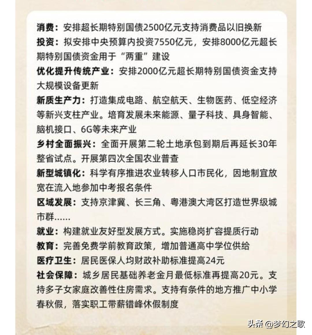 会议召开,2026年各项任务已经公布,资本市场迎来重大资金支持 首先就要说的是2026年的经济增速在4.5%-5.0%之间,这么大的体量维持这个增速确实不容易。 对于资本市场就是超长期国债的实行,还有消费方面的,叠加上以旧换新有将近4500亿的资金支持。 尤其说到了关于新质生产力的,以后科技才是重中之重,预计后续还会有更多的利好消息出现,这也是今天科技股表现良好的原因。 很显然2026年,大力扶持的都已经在会上说了,那么接下来就会出现行业利好了。