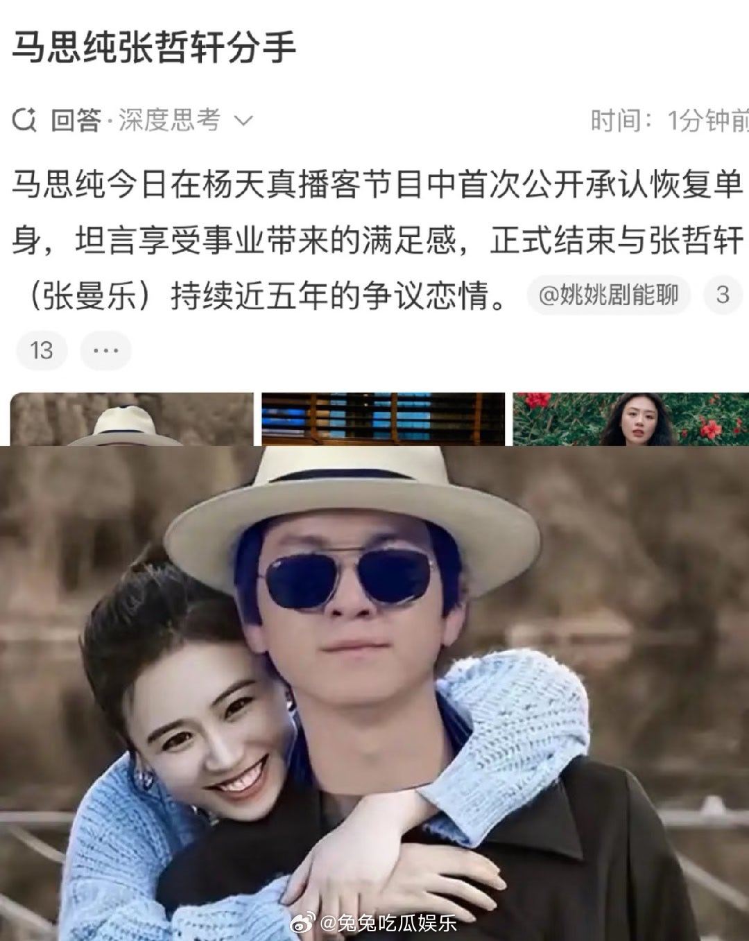 马思纯张哲轩分手 美女好好搞事业吧