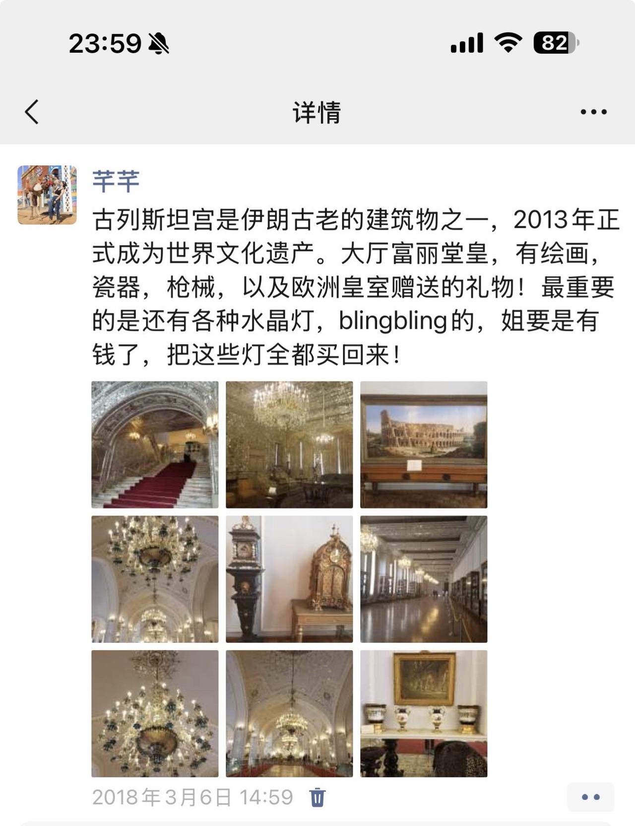 2018年,我在德黑兰的古列斯坦宫,镜厅的光把人照得很安静。