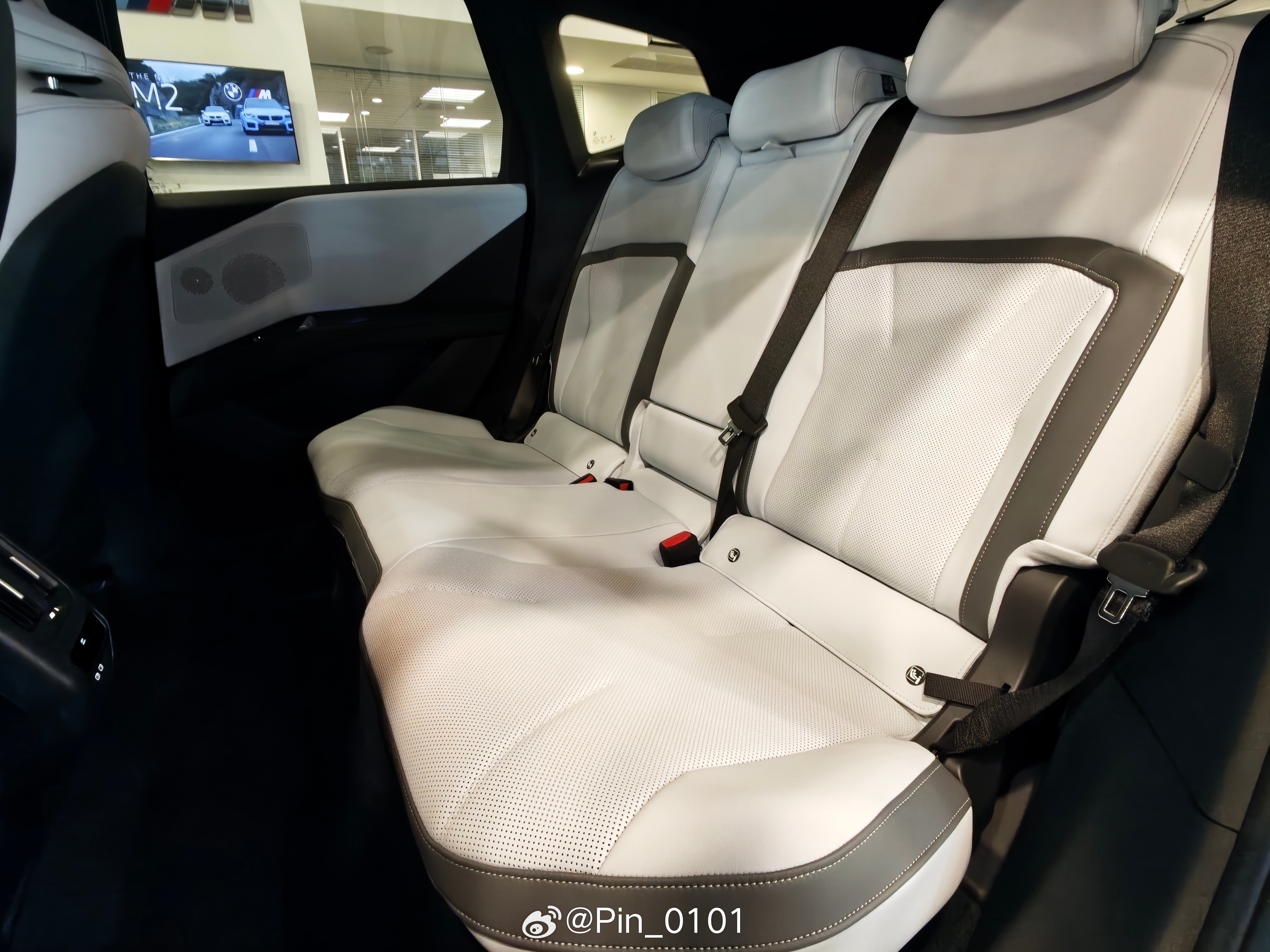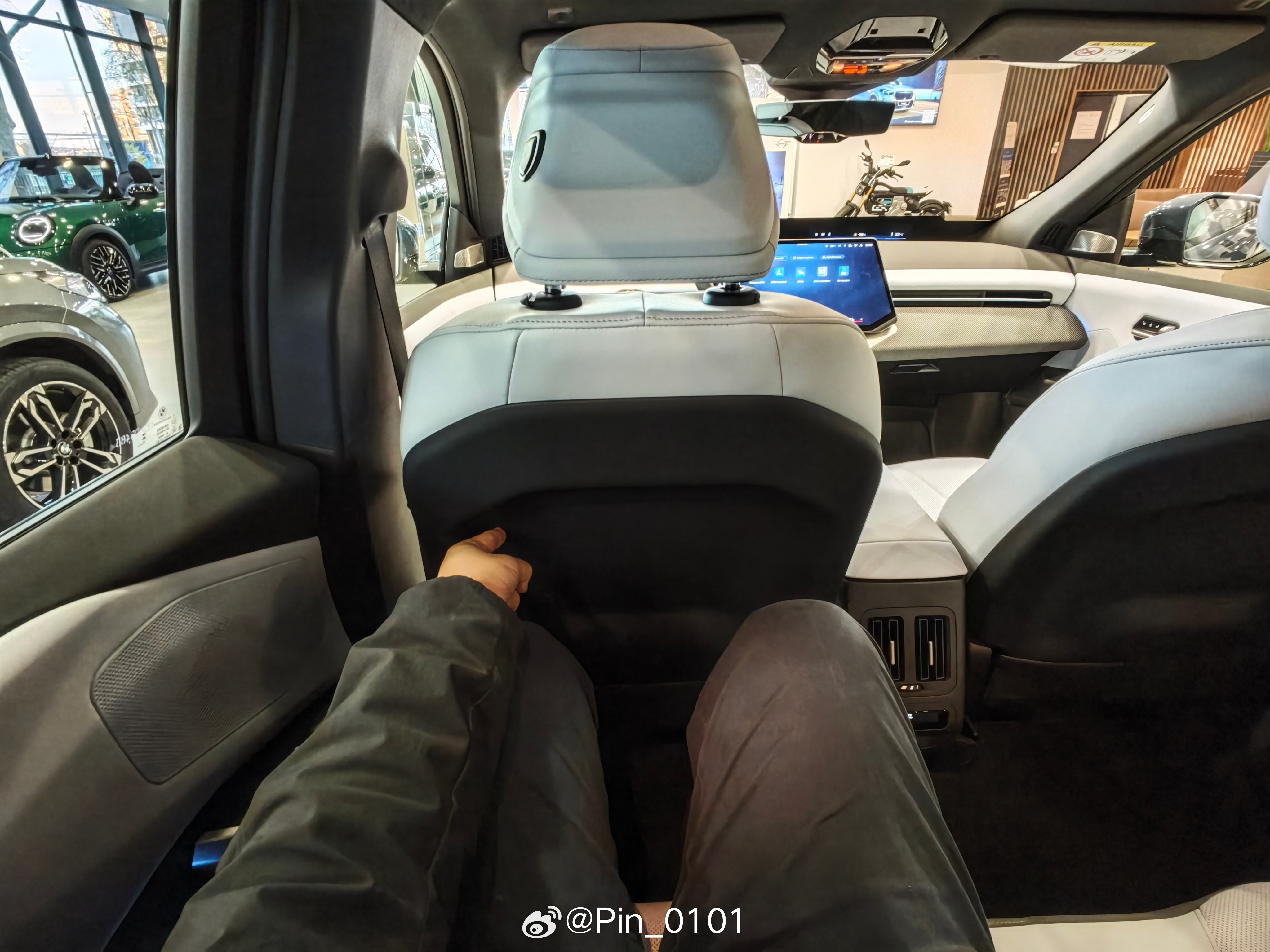后排腿部空间不错,我身高1m88,腿部还有一圈三指,这比燃油X3大多了。但是后排座椅的坐垫很硬,而且不够厚实,侧面看着像10年前丰田THS车型的后排座椅。而且手从缝隙中伸进去,还能够摸到固定座椅的黑色骨架……