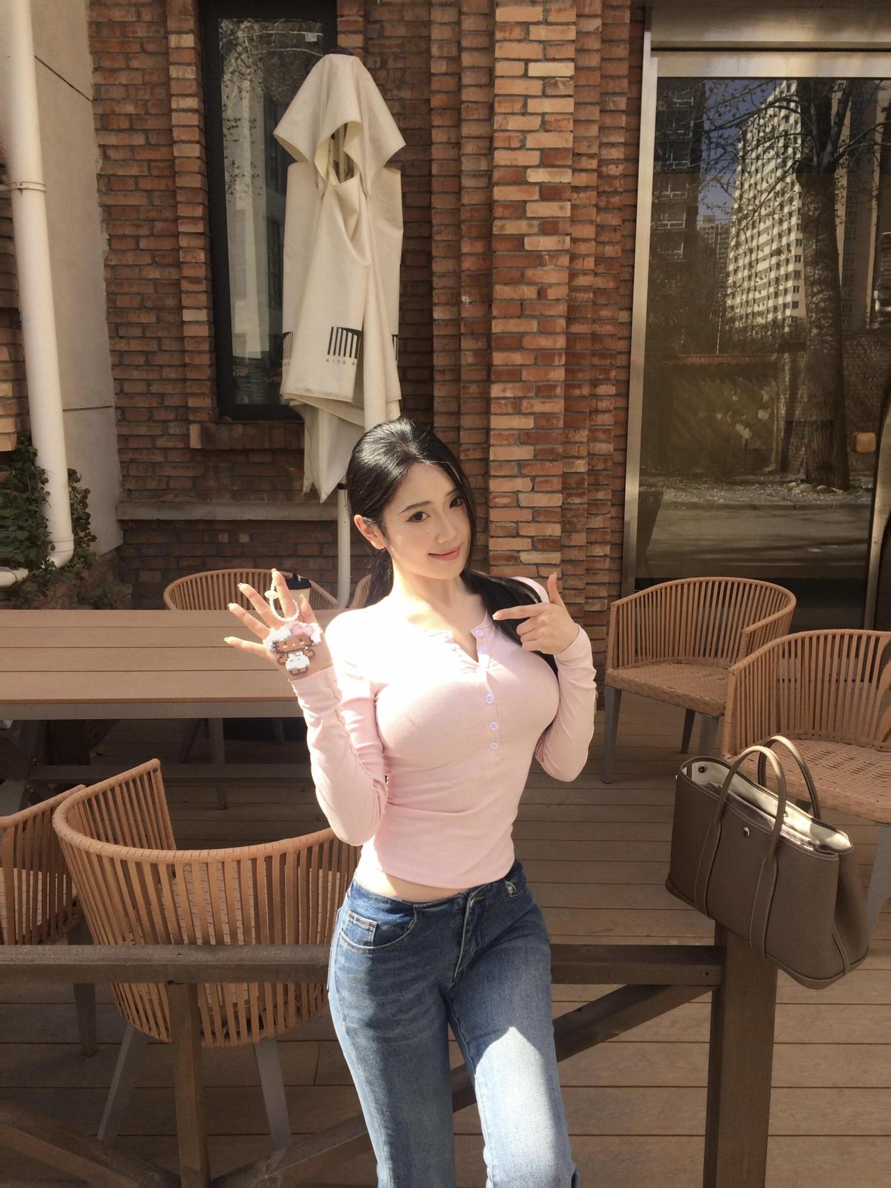 粉嫩上衣+牛仔裤,轻松出行,享受美好时光!减龄牛仔裤穿搭