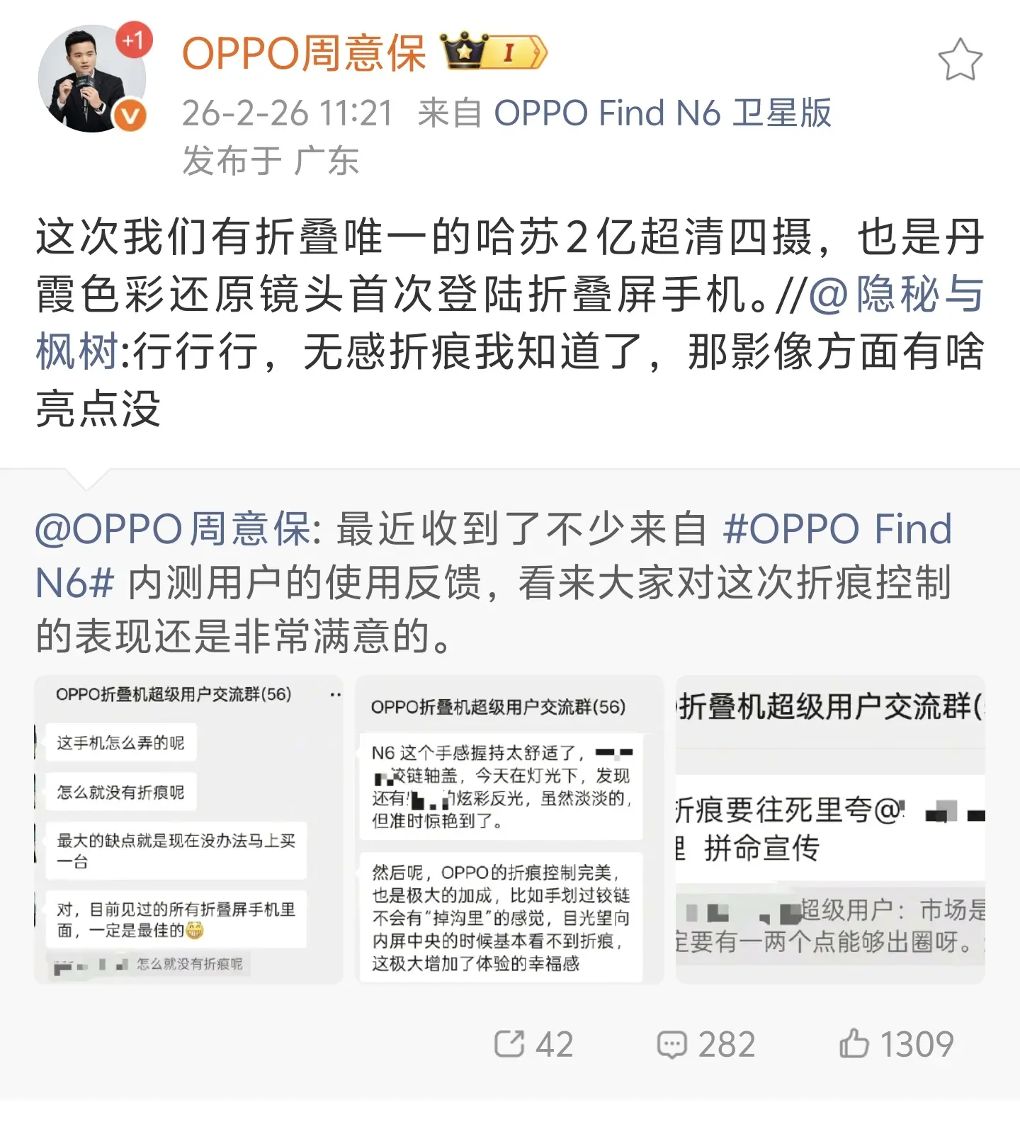 而且看Find系列产品负责人周意保在微博上确认了