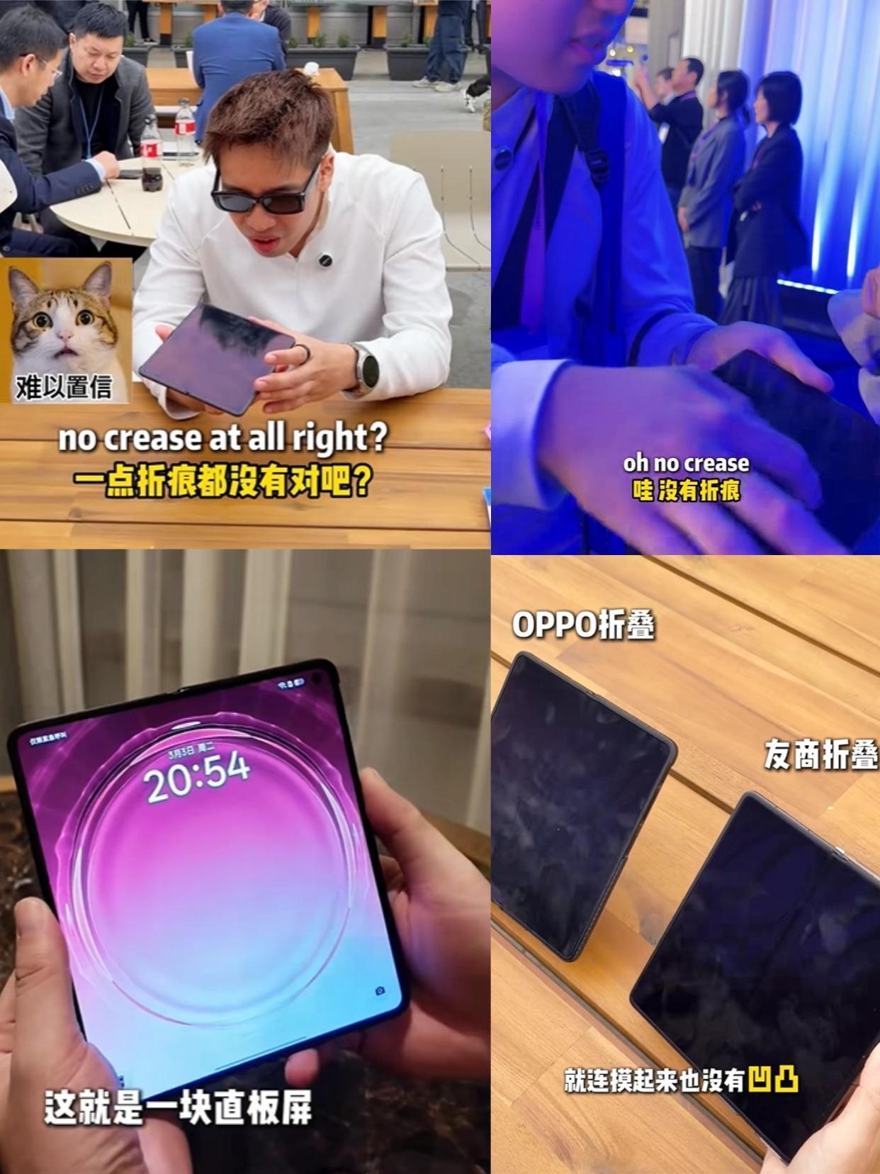 MWC实测:OPPO Find N6海外炸场!! OPPO这次在海外真的狠狠长脸了 看到好几个博主带着OPPO Find N6,去WMC 2026现场让老外上手体验 几个海外记者围着OPPO Find N6,各种角度翻转、凑近屏幕使劲看, 最后摊手耸肩,一脸“我认输”的表情。 从实拍图来看,即便是凑近距离拍摄,Find N6依旧平整得像面镜子, 肉眼几乎看不到折痕存在,可以说彻底终结了折叠屏的视觉焦虑 莱茵测过的「全球最平整」折叠屏含金量拉满了 而且据说这次Find N6还会提供黑、灰、橙三款新配色, 整体偏时尚调性,质感应该也会很在线 不过,今年存储和核心物料全线暴涨,不仅新品定价高,连很多老款都在悄悄提价 看到好多消息都在说,拆机抄作业OPPO供应链的苹果折叠屏,可能会卖到2W+ 在这种行业普遍涨价的情况下,虽然这次Find N6大概率也会有所涨价 但同为折叠屏无痕时代,而且现在预约开启了 看行情反响还挺火爆,说明真懂行的人早就出手了 Find N6这波不管是体验还是性价比,都直接赢麻了! OPPOFindN6 MWC2026 折叠屏手机 视觉无折痕 周意保 iPhoneFold 数码黑科技 换机建议