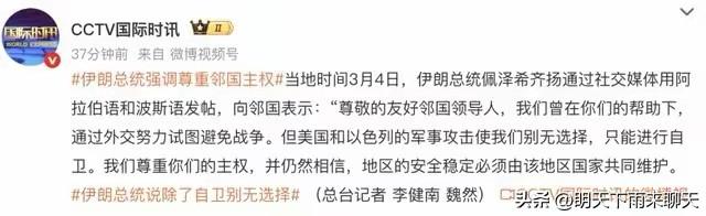 这伊朗总统啥时变得这么聪明了,刚把周边国家得罪完了的时候,就不失时机地及时表示表示歉意,这算是安抚一下这些邻国的情绪吧。 老夫还以为伊朗这次真的杀红了眼,不管不顾了,也不怕这些被炸的邻国群起而攻之,这不是雪上加霜吗? 现在伊朗总统广而告之的声明,估计背后有高人指点,避免树敌太多,也让那些想报复的国家暂时放弃了念头吧。