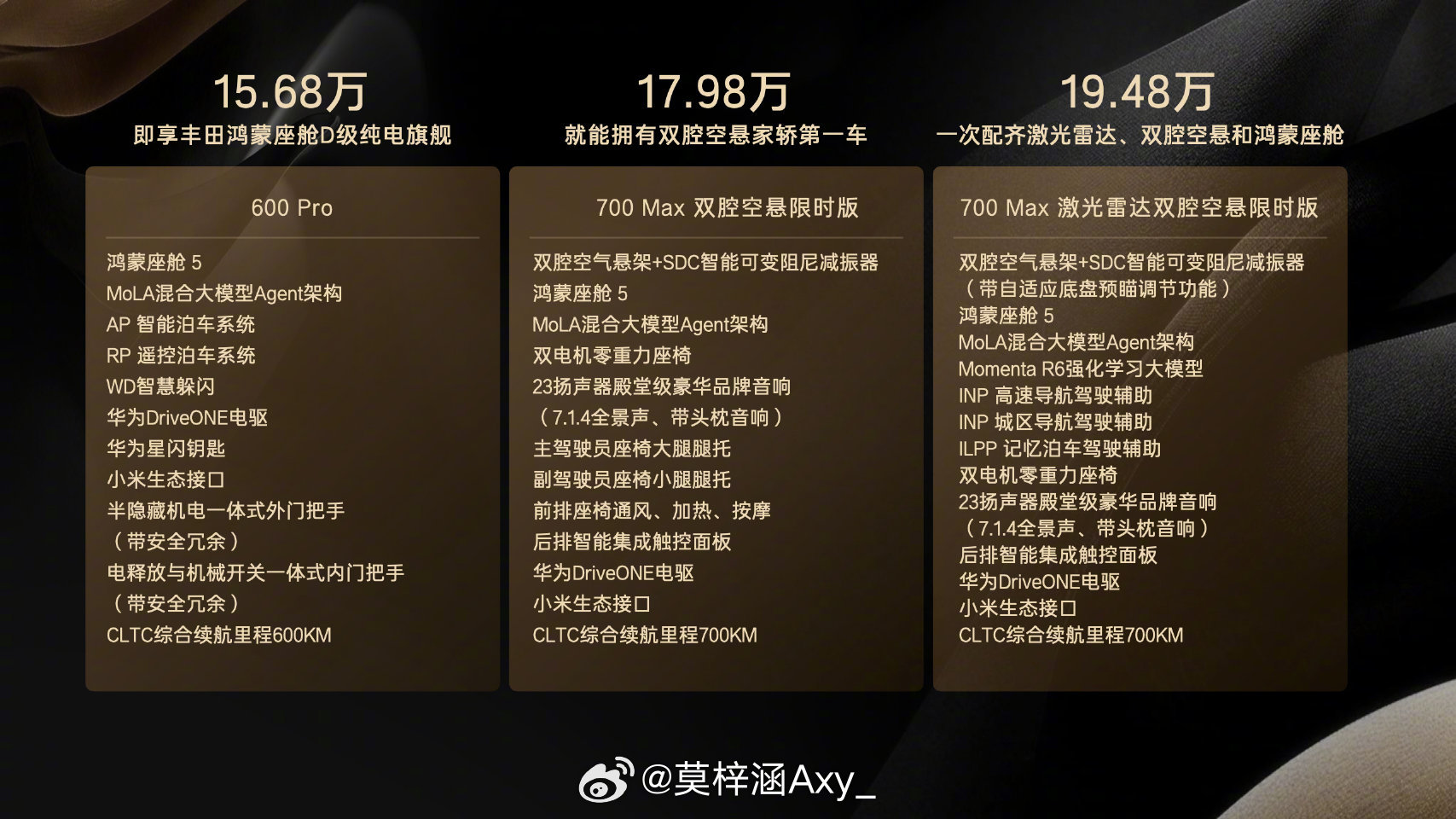 丰田铂智7预售权益价15.68万起丰田铂智7今日以15.68万元起的预售权益价正式开启预售,铂智7的710km长续航+3C快充,解决了续航焦虑;双腔空悬+零重力座椅,把舒适感做到了极致,再加上激光雷达智驾和终身质保,智驾终身免费,还有自燃、泊车事故、电池衰减的“三担责”承诺,安全感直接拉满。同价位唯一配齐20万+豪华五大件,5000元就能选装原厂双腔空悬。重新定义20万级电轿的价值标杆。汽场全开新能源汽车