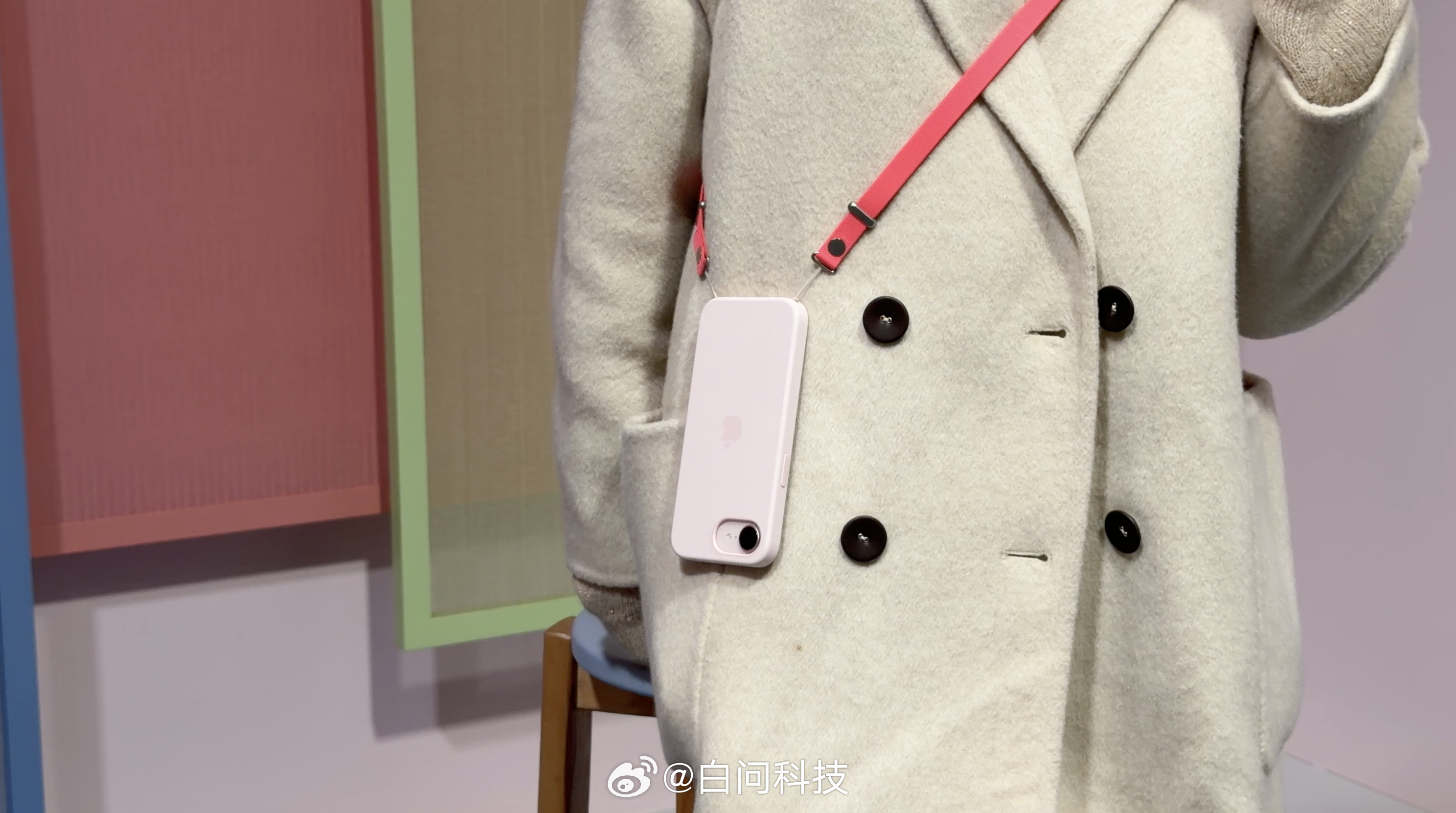 iPhone17e 的一些配件实拍硅胶保护壳、斜挎挂绳、磁吸卡包亮番石榴粉色很亮
