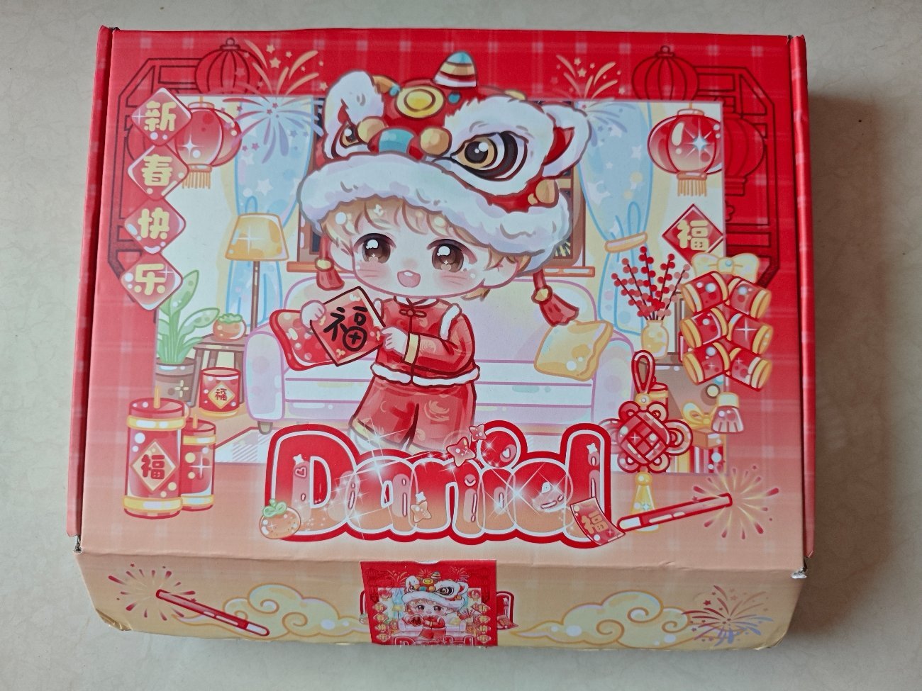 感谢日落欧尼寄给我的物料一收到快递这个纸盒子的新年气息扑面而来!超级可爱好多Q版