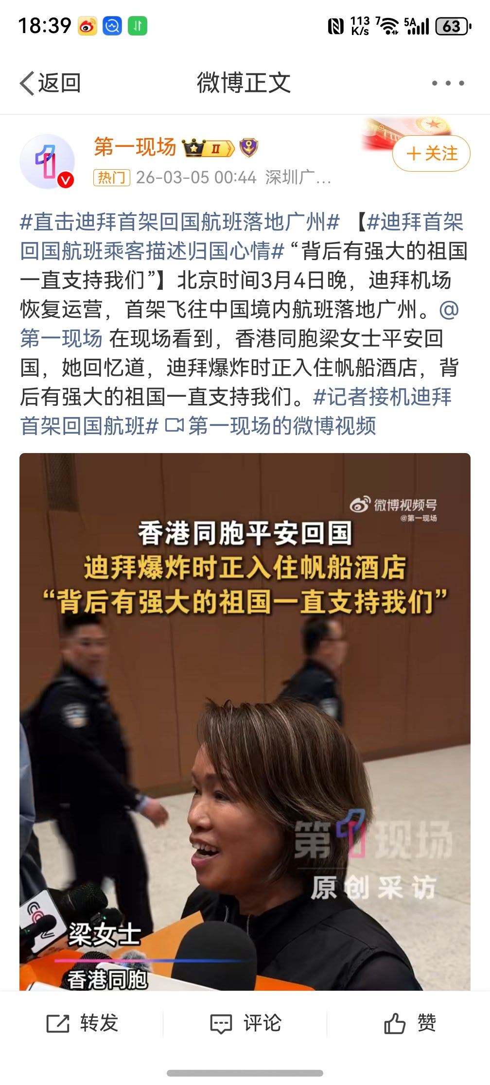 今天这场战争进入第六天了,从迪拜飞回来落地的香港阿姨、姐妹们对祖国的激情赞美看,在侧面已经可以确认咱们前天给出的判断了: