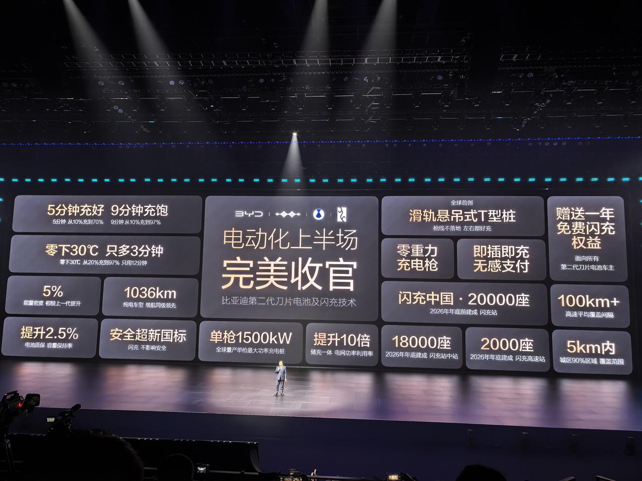 不知道那些嘲讽比亚迪一桩不建的车企,在今天之后会不会后悔。 因为比亚迪第二代电池出来了后,准备把新的闪充技术开始普及,在2026年年底要在全国建2万座闪充站,高速服务区2000座。 而且这个老六,搭载第二代刀片电池的车还没上市,比亚迪就已经建好了4239座闪充站了,这直接超过了很多车企的超充数了 主要的是,王传福还承诺,现在购买第二代刀片电池汽车的车主,一年内在闪充站可以免费充电,等于免费开一年!最主要的是比亚迪闪充能做到5分钟充好,9分钟充饱,零下30度也能做到12分钟充饱!比亚迪:第二代刀片电池9分钟充饱 闪充