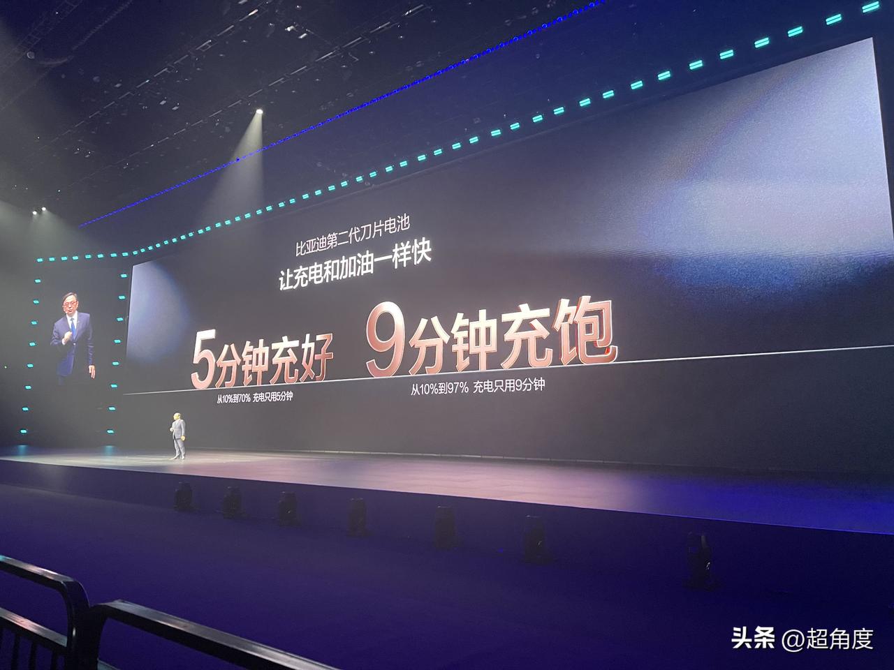 比亚迪发布第二代刀片电池,5分钟充好(10%-70%),9分钟充饱(10%-97%),剩下那3%留给动能回收。王传福:没有人比比亚迪更懂电池。