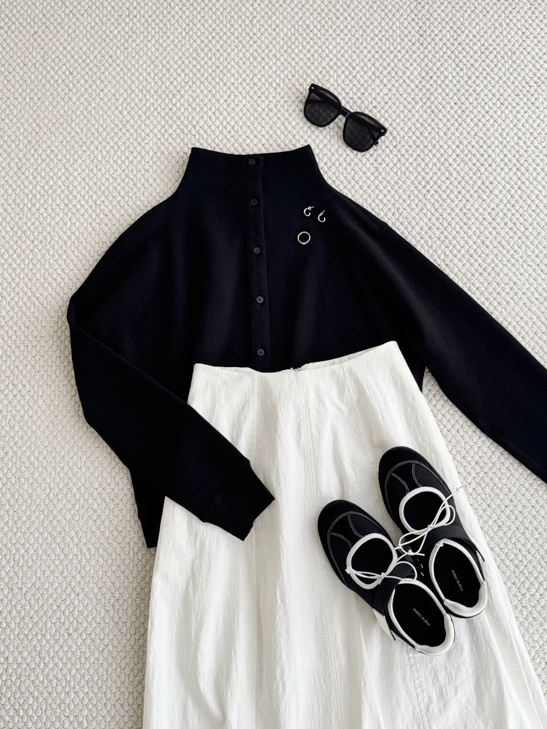 黑色立领夹克+白色半裙+运动玛丽珍,简约高级