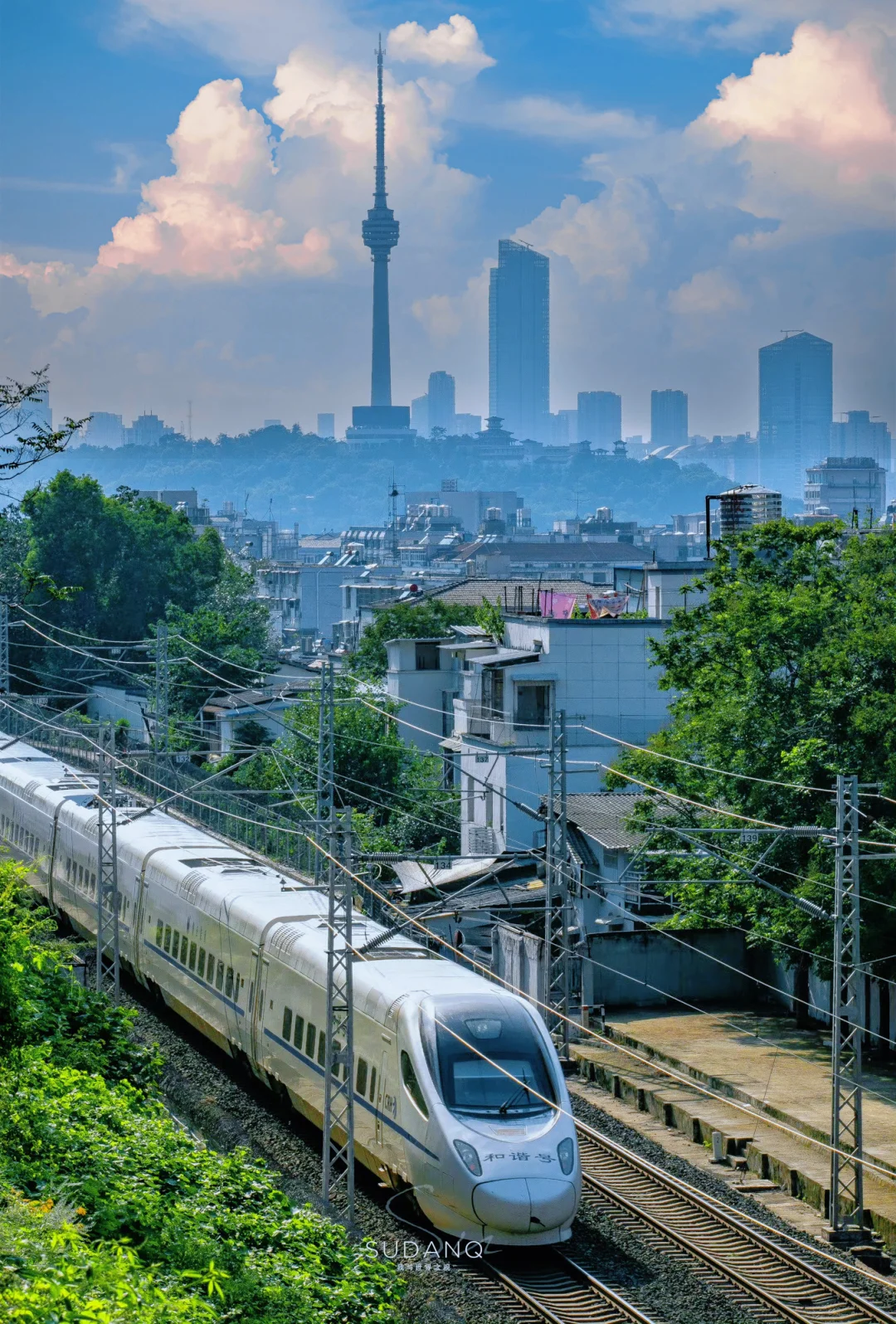 龟山电视塔与火车同框
