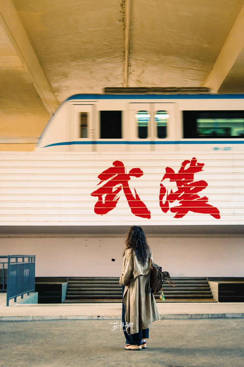 位于中山大道与黄浦大街交叉口,走到桥下可以拍到轻轨与“武汉”两个大字同框。