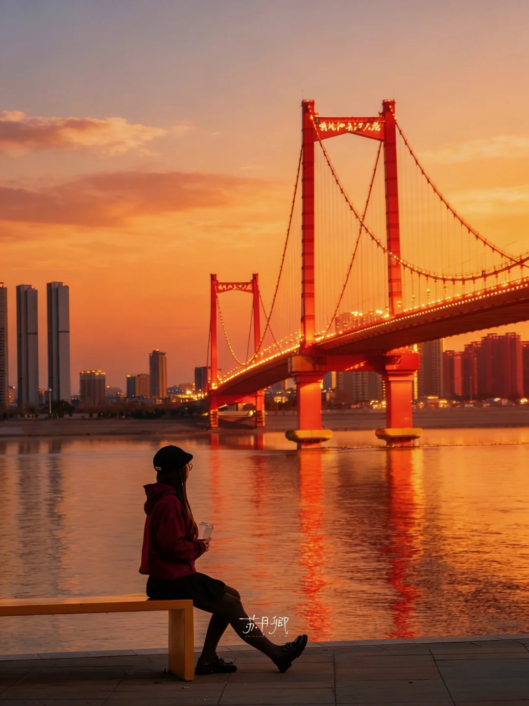 桥下右侧,日落➕夜景,随意找个长椅坐下,轻松get氛围感大片。