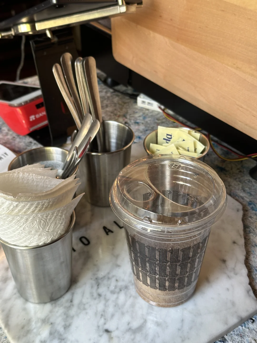 ☕️ 每一次抱着希望而去,每一次都落空。惨不忍睹的拉花,淡如水的奶味,存在感极为稀薄的咖啡味。 为啥花70比索来买这?速溶咖啡+牛奶都要更好喝一点。 不单指这一家店,去过至少20多家,真的国内咖啡馆太卷了,已经被养刁了。当然手冲的平均水平要高很多,像Drip Specialty Coffee。 看其他人喝得美滋滋,是不是我要求太高了?图8️⃣杯子里的黄糖,前面一位买美式的大叔 直接往里面倒了大半杯糖,看呆我。 想念在国内家里的半自动意式咖啡机了。