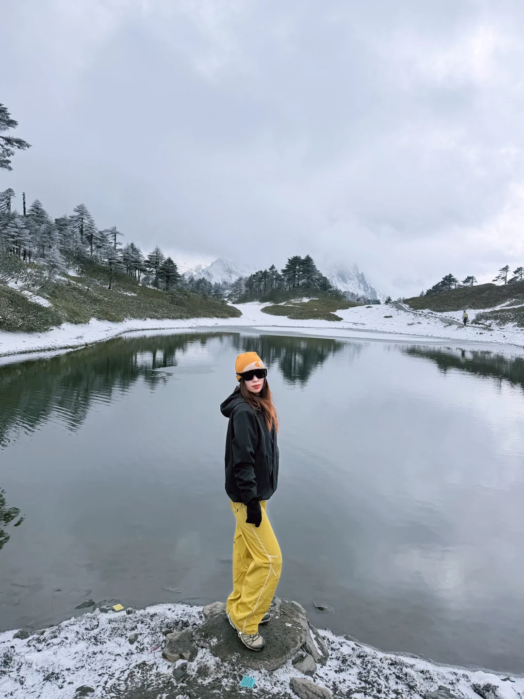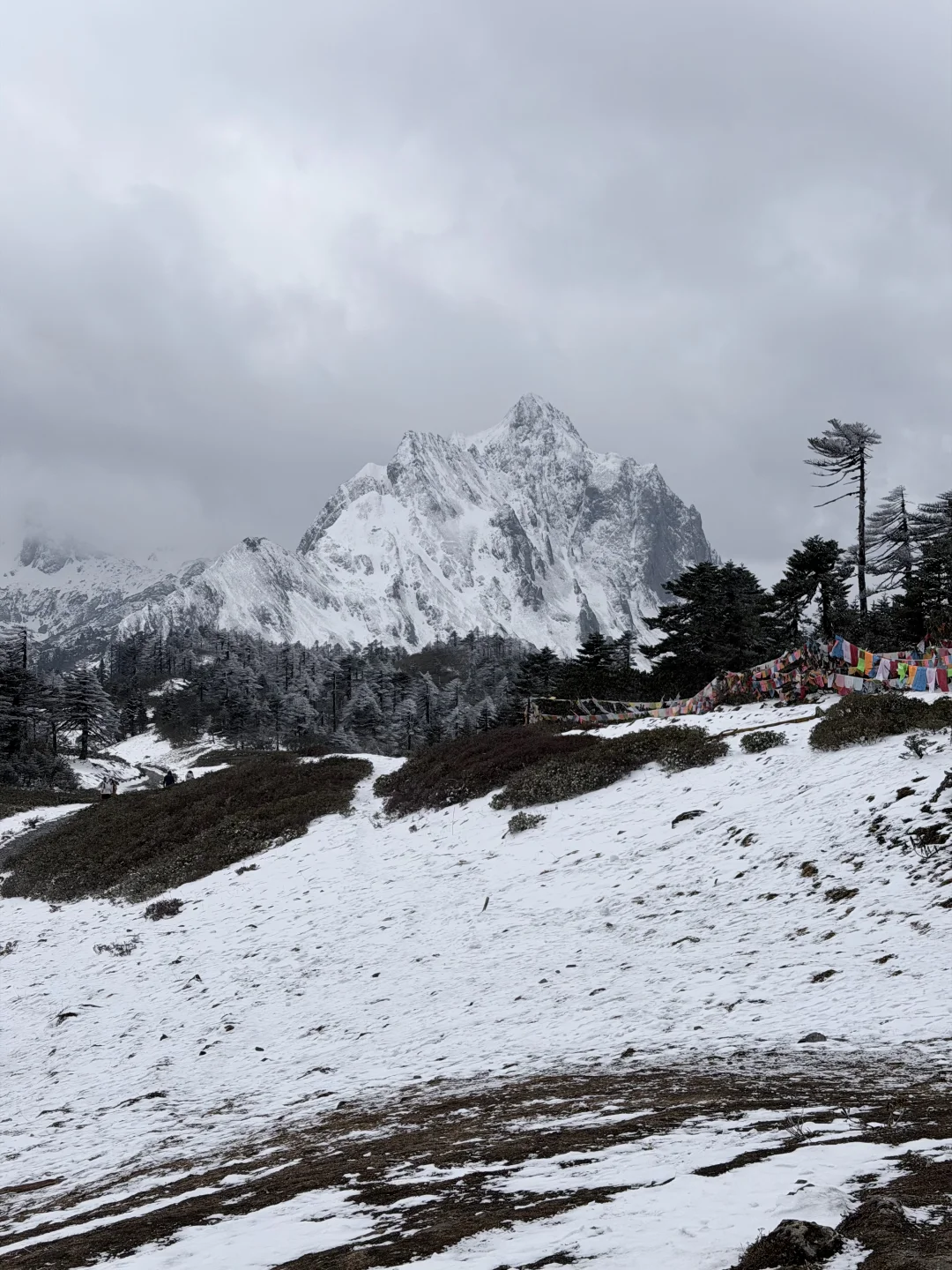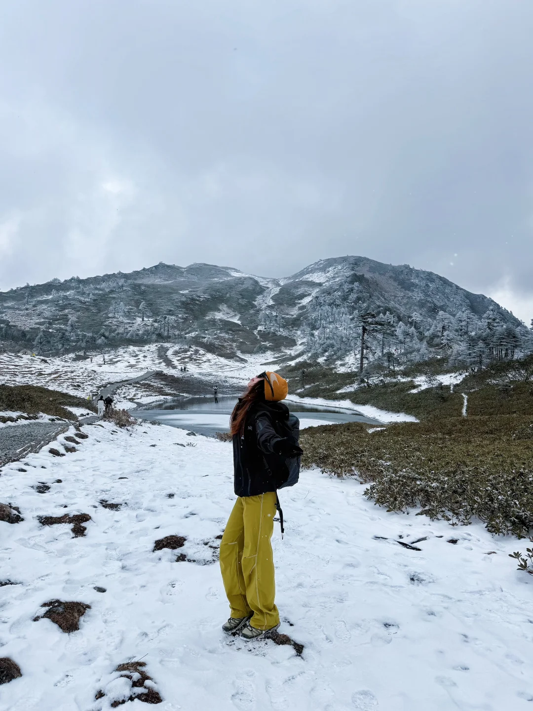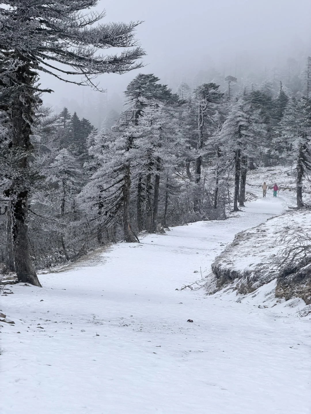 前一天上午来的路上还在封路 下午就通路了(有点好运) 刚到山脚就飘起了雪花❄️ 到徒步起点时下着雪雾气很大 走到半路雾气吹散 此刻风景美到走不动道 小环线难度低 景美 适合高原徒步新手 雪山下徒步光线真的很强☀️ 记得戴上我的「猛士M1」护目镜🥽 不然眼睛会不舒服 出行交通建议拼车前往🚗 孔雀山很美下次还来!