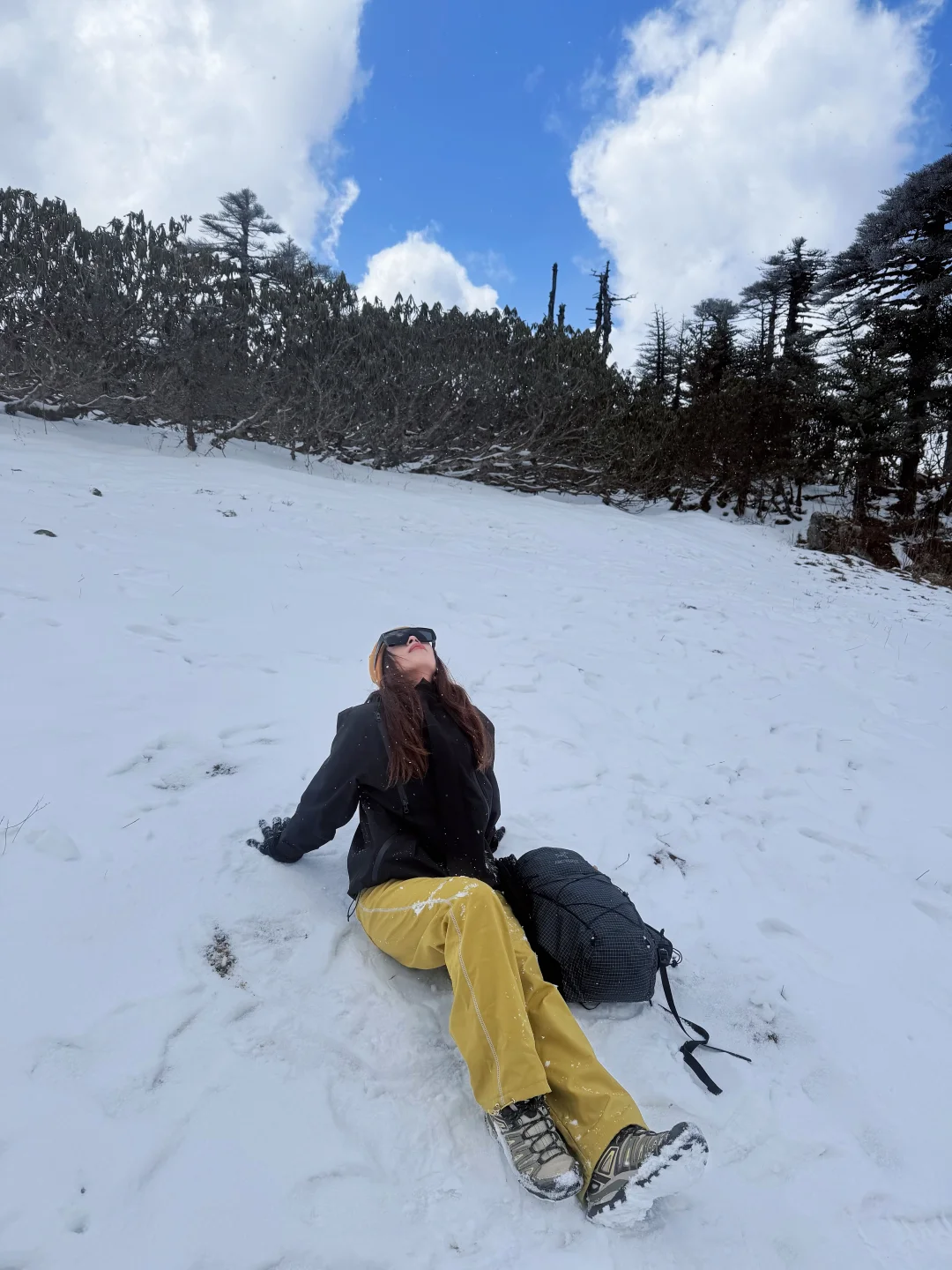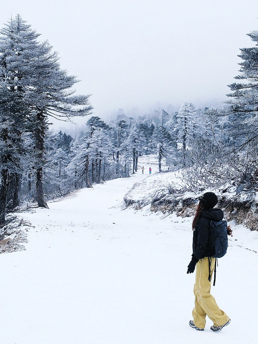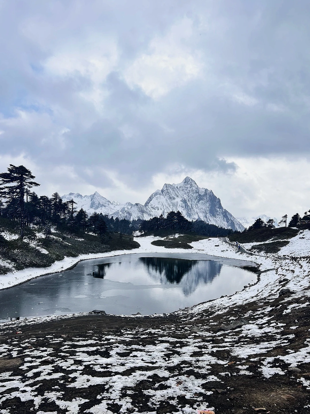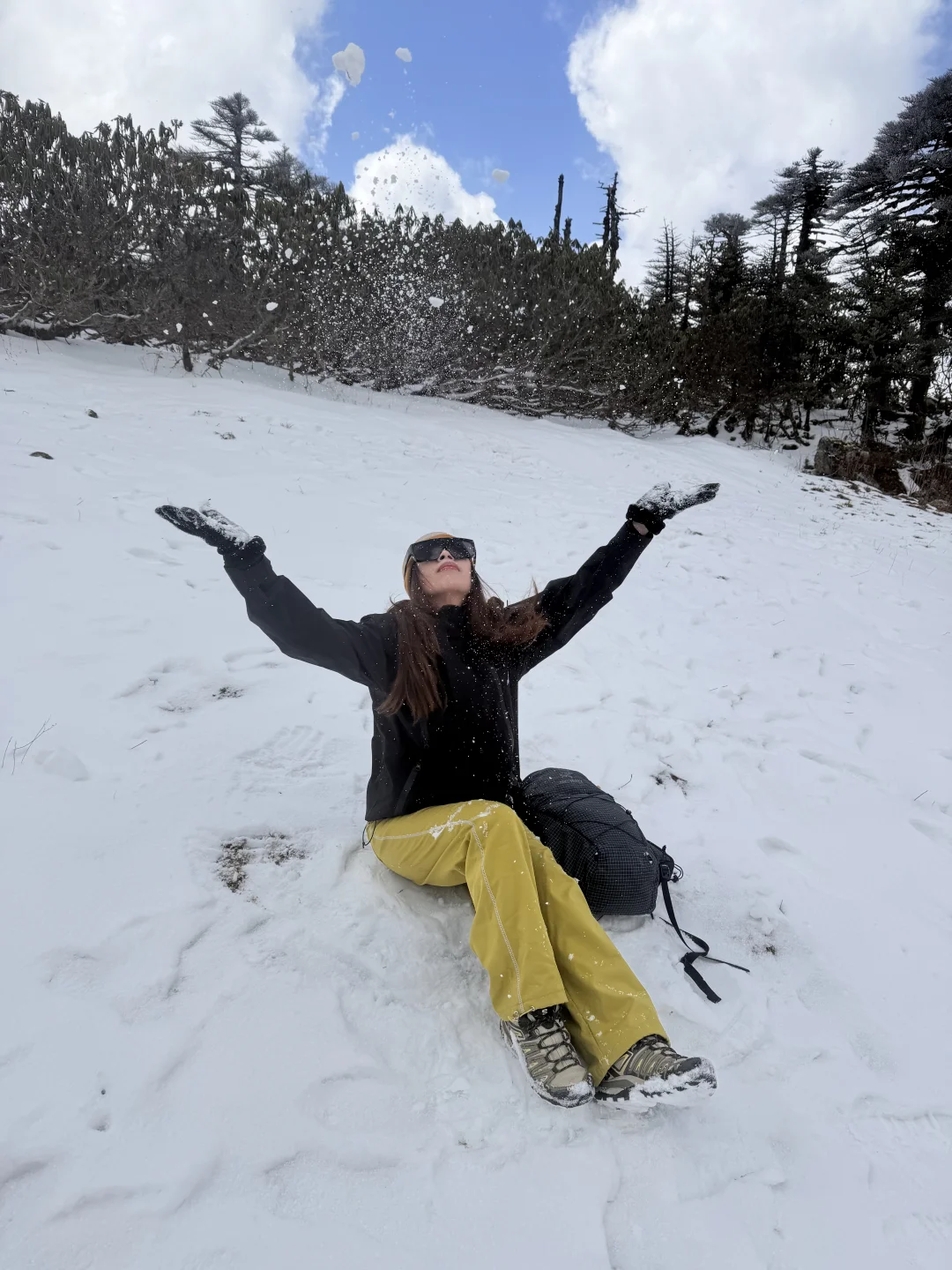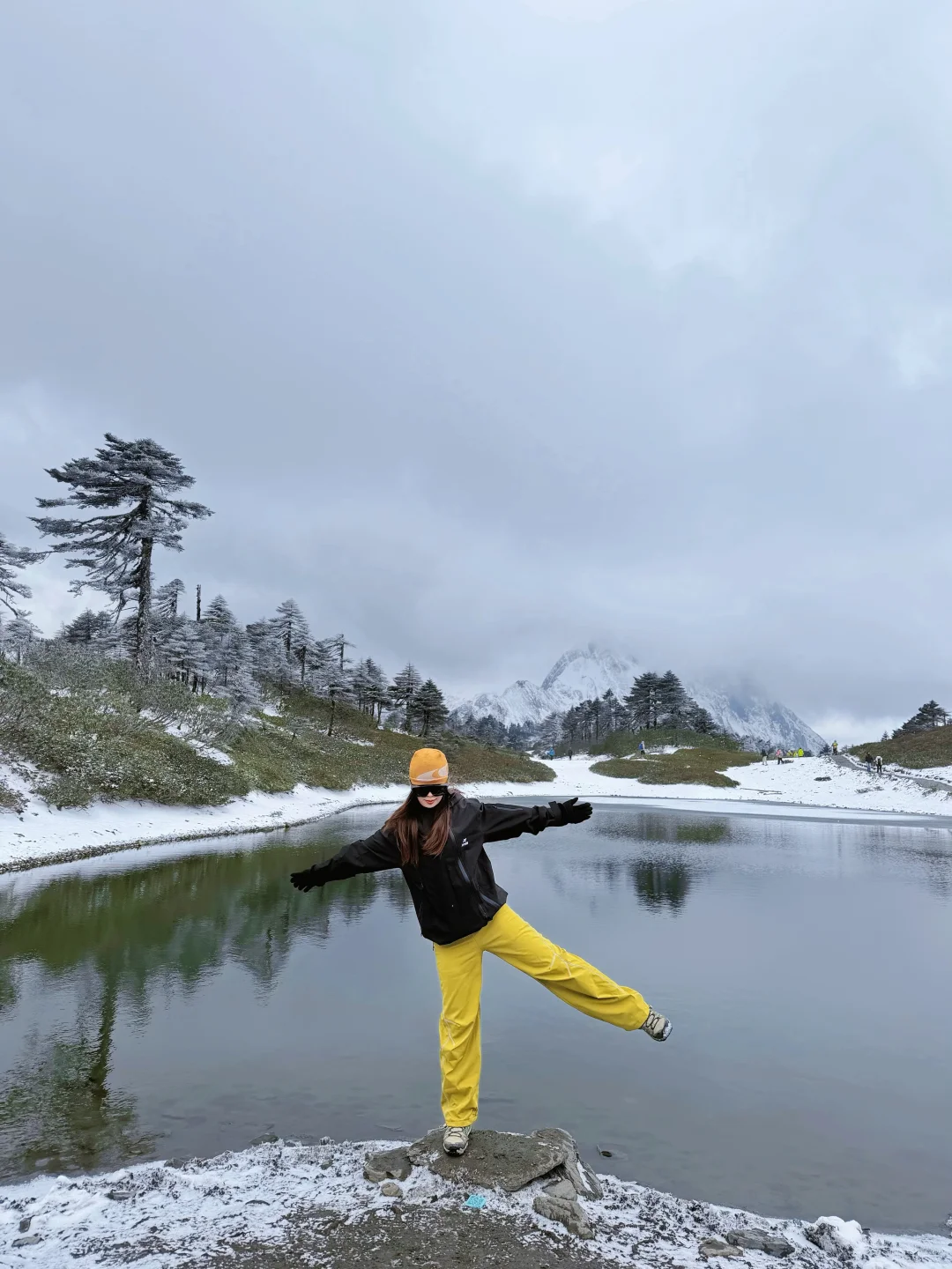 前一天上午来的路上还在封路 下午就通路了(有点好运) 刚到山脚就飘起了雪花❄️ 到徒步起点时下着雪雾气很大 走到半路雾气吹散 此刻风景美到走不动道 小环线难度低 景美 适合高原徒步新手 雪山下徒步光线真的很强☀️ 记得戴上我的「猛士M1」护目镜🥽 不然眼睛会不舒服 出行交通建议拼车前往🚗 孔雀山很美下次还来!