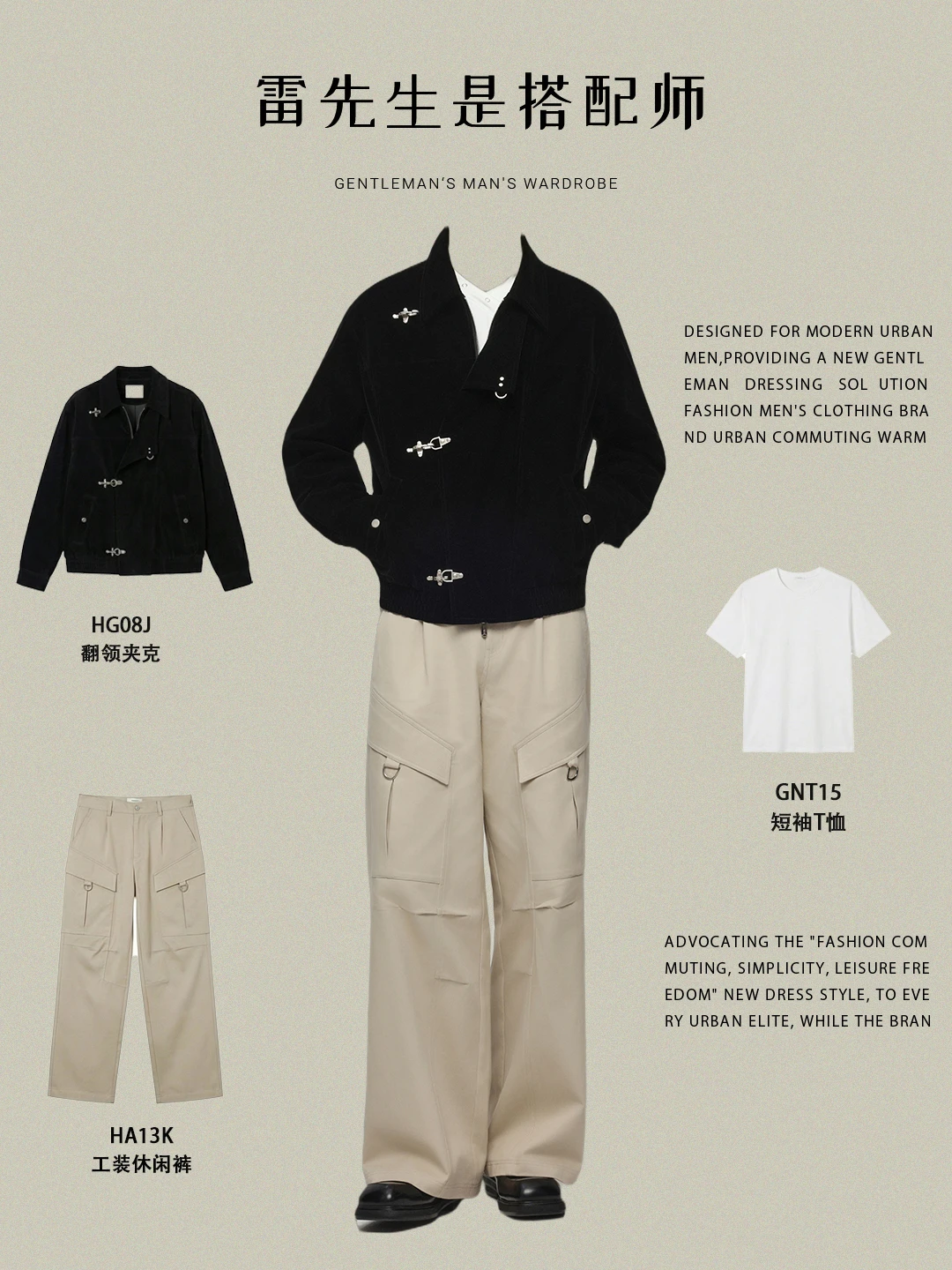 🔘 两种风格随心切换: 1️⃣ 摩登复古感: 深棕色夹克内搭淡紫色衬衫,冷暖色调的碰撞极具时尚张力。 2️⃣ 极简机能感: 黑色夹克内搭纯白T恤与卡其色工装裤,色彩干净利落,是日常出门绝不会出错的造型