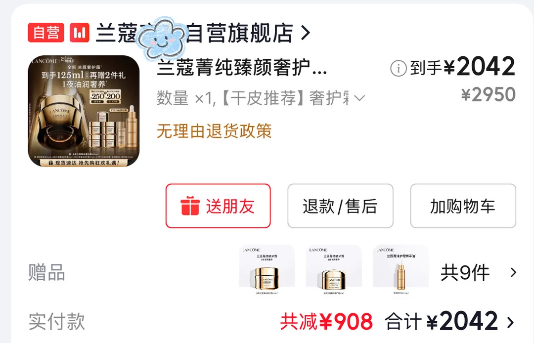 兰蔻菁纯面霜轻盈版和奢护霜好价吗