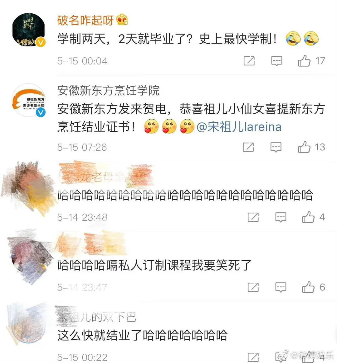 祖儿司宫令持证上岗,已拿新东方结业证书