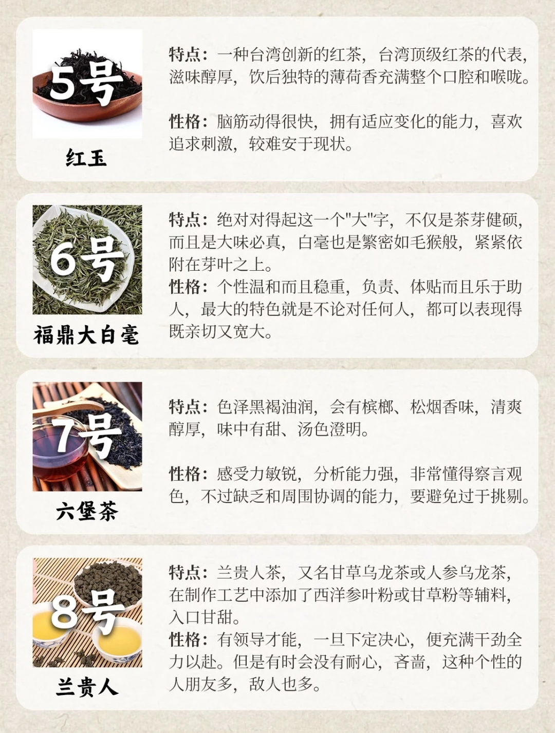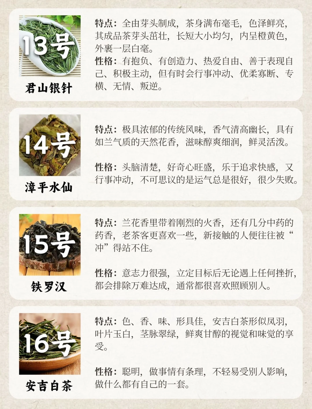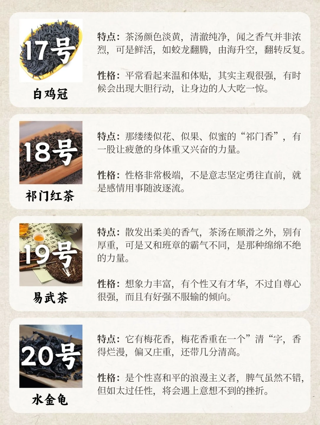 18号:祁门红茶,祁门香独特,甜润醇厚,是红茶中的温婉代表。