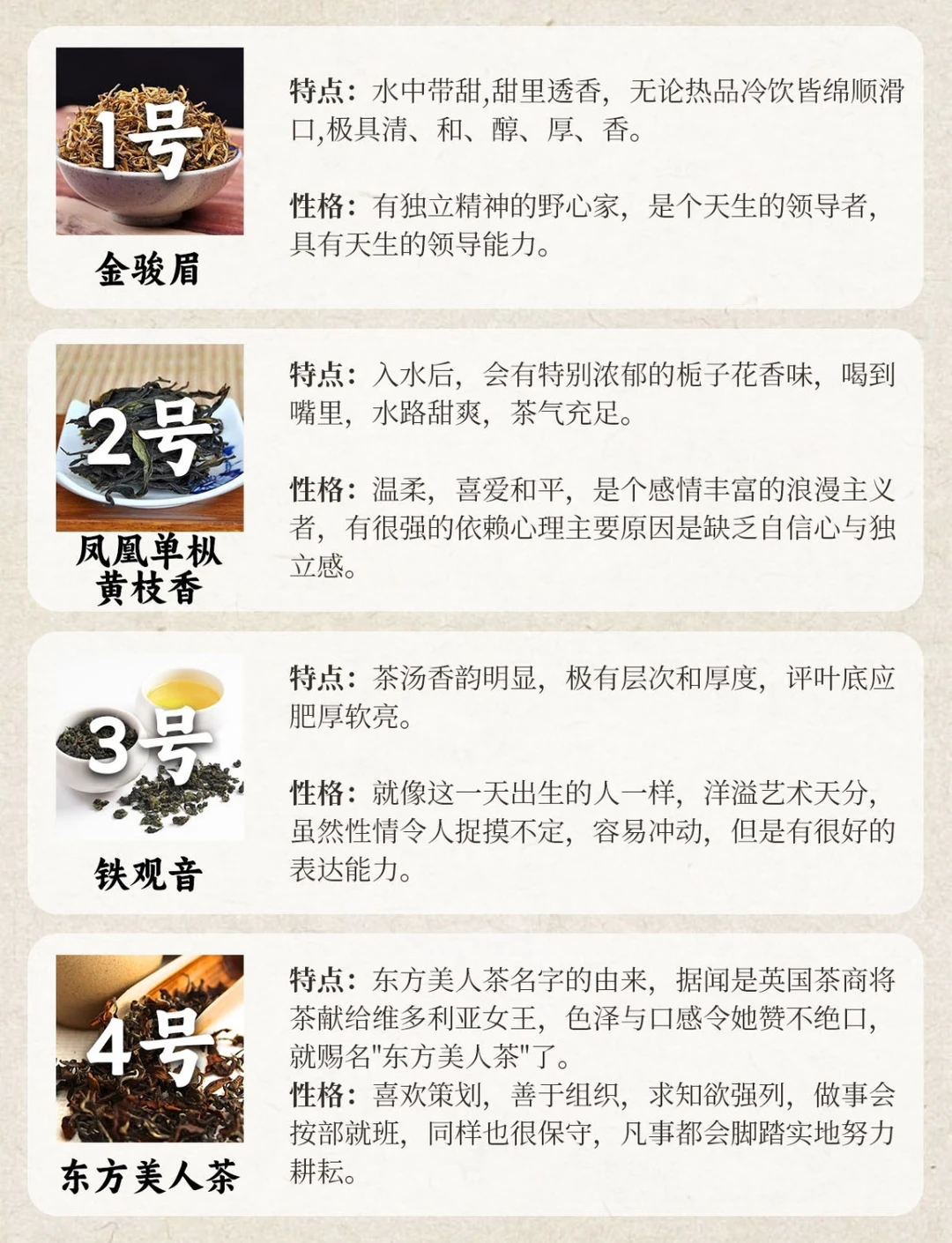2号:凤凰单丛,香型百变,清冽回甘,像生活里藏着的多样惊喜。