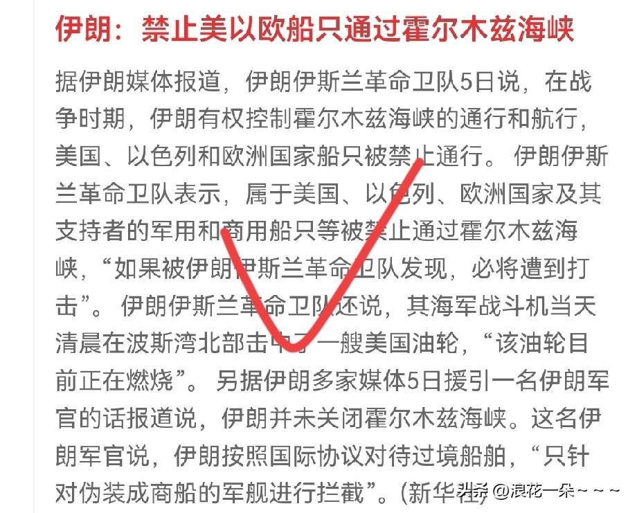 哇塞!盘后来利好了![鼓掌] 伊朗:禁止美以欧船只通过霍尔木兹海峡。看到没有,这是多么好的事情啊。特别是对A股来说,我认为绝对是个大利好,你可以仔细看看伊朗媒体这篇报道里面的内容,即使伊朗现在要控制霍尔木兹海峡也是有针对性的,有区别的。 人家已经很明确了,发现美国、以色列和欧洲以及支持者的军用和商用船只才在伊朗的打击范围之内。其他国家的正常的贸易往来人家伊朗就没放在眼里,我认为,这一方面伊朗还是很有大局观的,也有可能是伊朗收到了某种信号。 所以看到这两天,跟石油有关的板块已经忽上忽下涨不动了,基本上到头了。也说明利空逐步消除了消化完了。要不今天怎么那么多股上涨?今天高开低走一贯的套路,相当于三连阴啊,明天继续看涨,这个点位放心就是了。