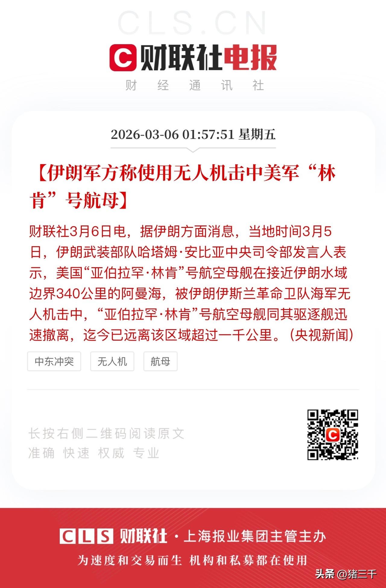 伊朗化身美股指挥家, 三重消息让今晚美股普跌科技抛售: 1.伊朗无人机击中美军“林肯”号航母!伊朗是真听劝,三千建议集中火力打残一艘航母,它真就这么干了。 2.霍尔木兹海峡没有封锁。但不允许对伊朗不友好、敌对国家船只通过。伊朗直接点出了美以英法等国船只!为了证明这个问题,伊朗击沉油轮的同时自己的两艘散户船刚离港发出。 3.伊朗导弹击中巴林石油公司炼油厂。消息出来原油跳涨超8%,昨天A股股民油气急着割肉的今天又要拍断腿?但现在关键问题是东大的油轮应该可以过的。A股石油供需关系没有改变。市场担忧的是美以打击伊朗石油设施报复,伊朗全面回击导致冲突升级。 种种利空叠加, 白宫劳特大怒称要解雇国土安全部部长。