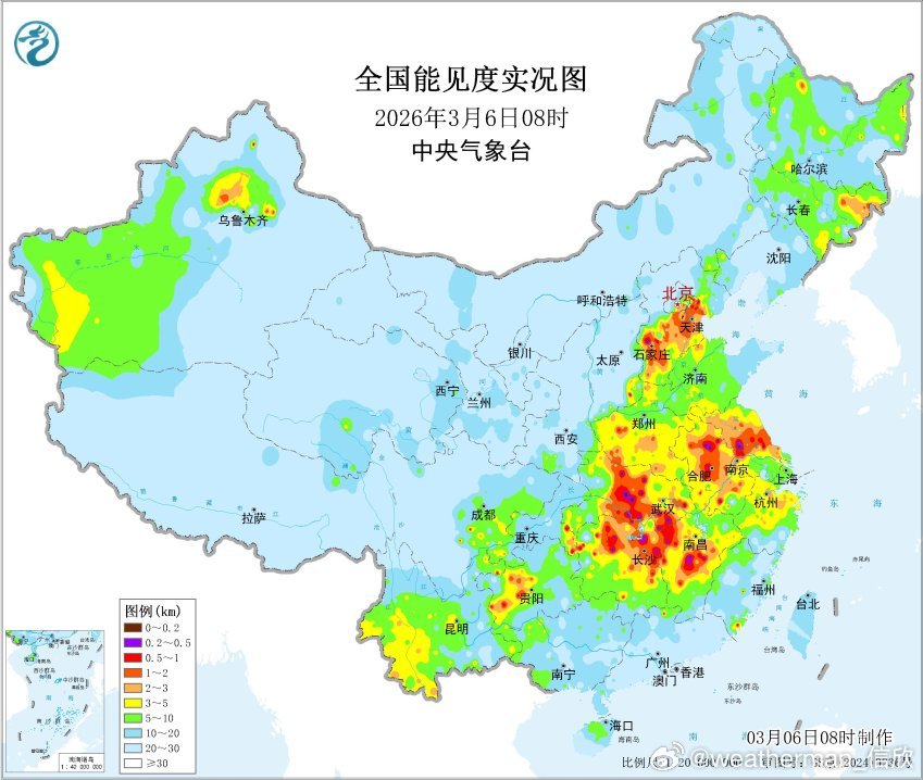 【雾 霾 沙尘】在降水过后,湿度大,今晨天津河北河南湖北安徽江苏江西湖南贵州重庆部分站点出现大雾。部分省市8时能见度最低的站点:河南嵩山25米(特强浓雾)、安徽天柱山54米、湖北荆门72米、河北灵寿72米、重庆秀山87米、贵州安顺89米、江苏六合113米、江西新干116米、湖南花垣130米、天津宝坻139米,出现强浓雾。