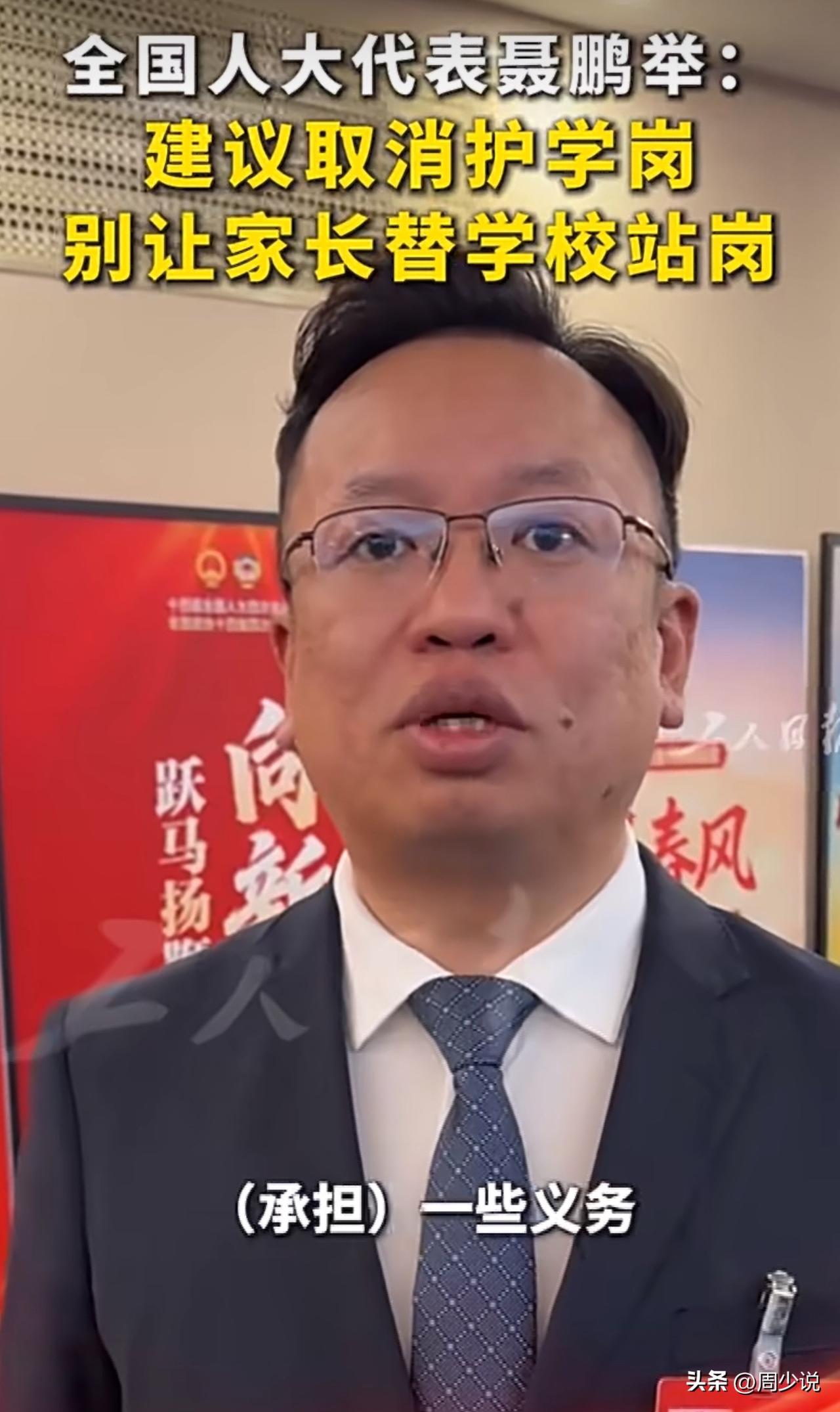 “这个提议好!”近日,全国人大代表聂鹏举一条建议,瞬间引爆家长圈。他公开提出,建议全面取消家长护学岗机制,坦言多数家长工作繁忙、时间紧张,强制参与护学岗,只会加重家庭负担。 同时,他明确提出,校园安全的主体责任,本该由学校承担,不该转嫁给普通家长。双职工家庭早出晚归,工作本就分身乏术,还要抽出时间去校门口站岗,请假扣工资是常事,实在抽不开身,只能拜托老人代劳。 此话一出,瞬间引发众多网友议论纷纷。有网友无奈吐槽:“上班已经够累,还要抽时间去站岗,不去又怕孩子被区别对待。” 也有网友表示支持:“护学岗就该学校、保安、交警负责,家长真的耗不起。” 在周少看来,这条建议真的挺好。多数是职工家庭,工作就够累的了,还要抽身去校门口站岗,搞得身心疲惫不说,还得请假扣工资。 当然,出现这个问题的原因,说到底,还是不少学校模糊了责任边界,把本该自己扛的安全工作,变相摊派给了家长。 护学岗的初心是好的,可执行中屡屡走样,变成了形式主义的打卡。家长没有经过专业培训,疏导交通、应对突发状况本就力不从心,还要牺牲工作与生活时间,实在得不偿失。 除此之外,这位代表的建议并非否定家校合作,而是呼唤教育回归本真。校园安全,从来不是家长的义务,学校扛起主体责任,联动公安、交警完善安保,才是长久之计。 所以,别再让护学岗成为家长的枷锁,让家校关系回归纯粹,才是对孩子最好的守护。 对于这位代表的提议,大家觉得怎么样呢?#寻美三湘# #周少说教育# #网络名人赞两会#