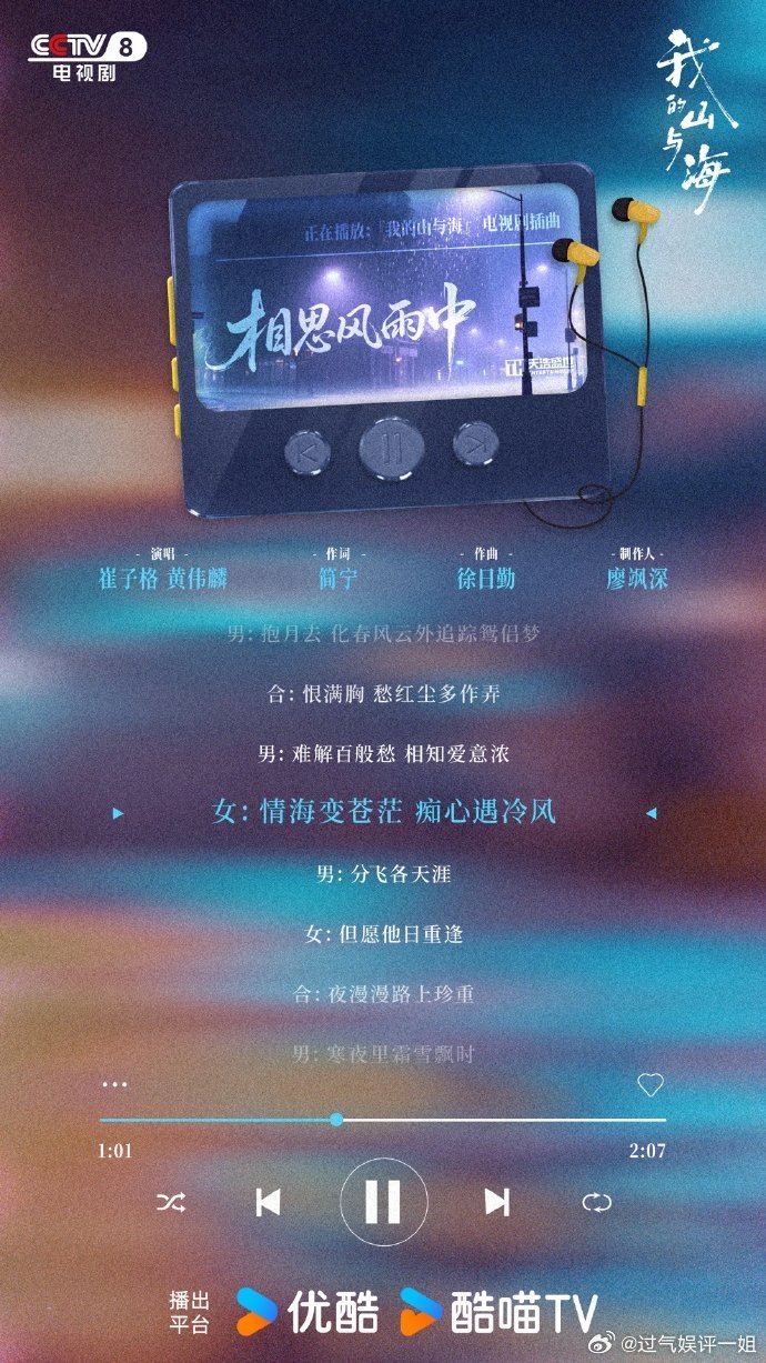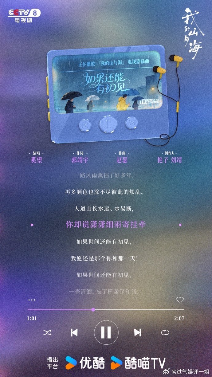 我的山与海OST阵容我的山与海OST歌单被《我的山与海》OST狠狠圈粉,实力派歌手齐聚,歌声与剧情完美契合,从深情到热血,从温柔到治愈,首首精品,追剧听歌双享受,已经加入循环歌单。