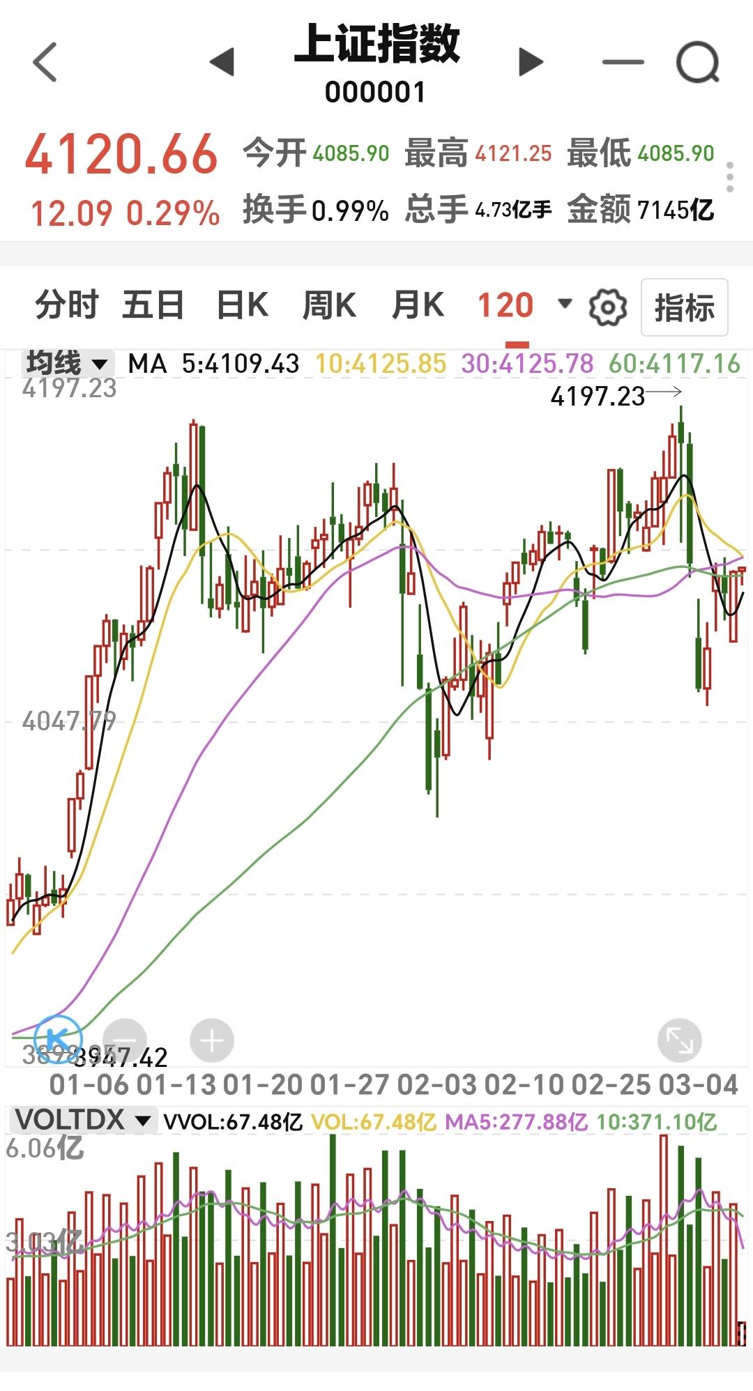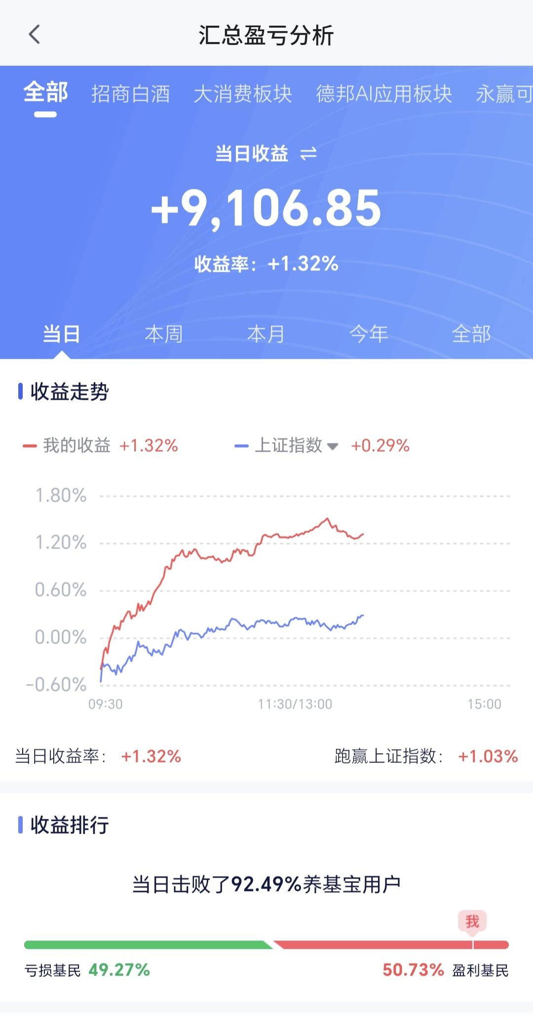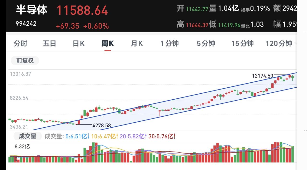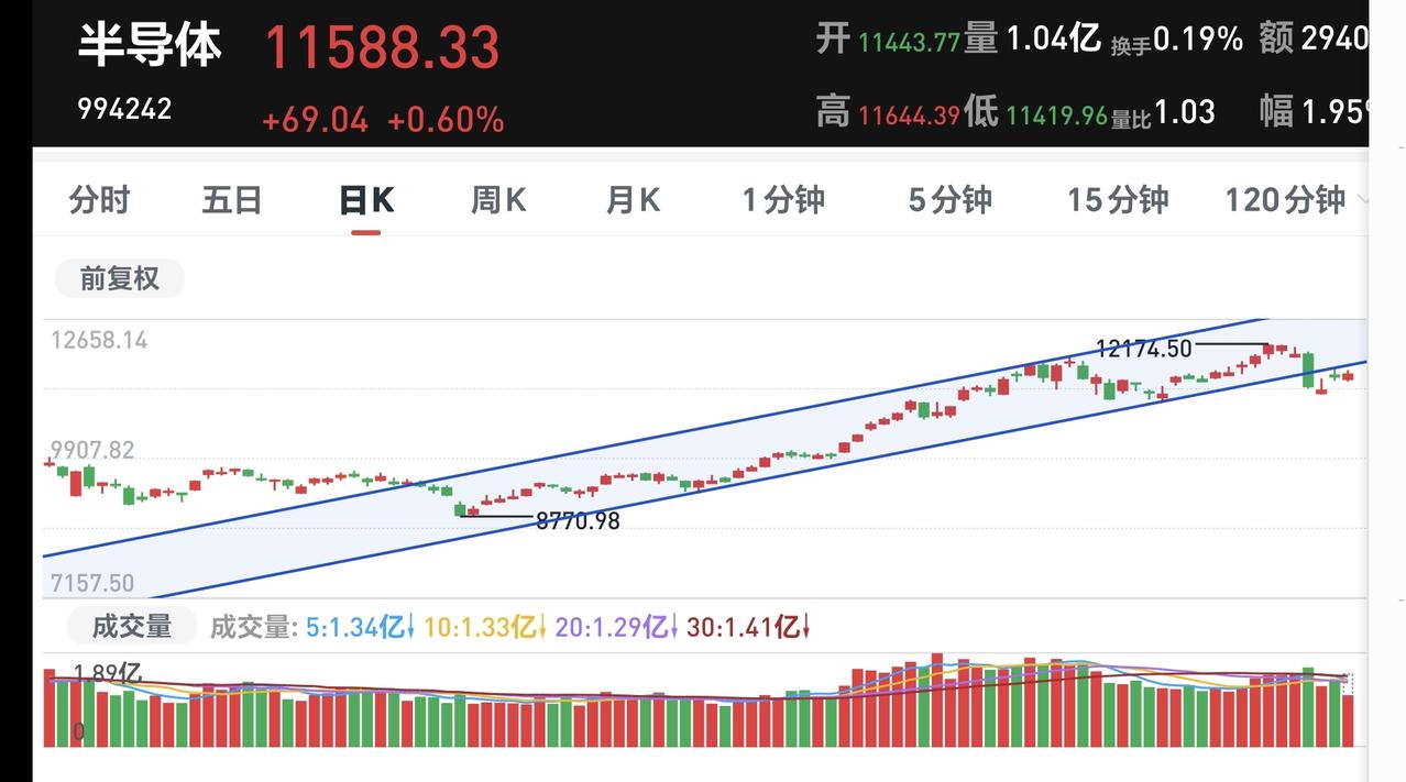 基金:市场放量滞涨,今天究竟应该怎么办 今天市场低开高走以后横盘震荡,现在三大指数都是小幅度上涨,创业板指上涨了0.53%,盘中点位3233点,上证指数上涨了0.29%,盘中点位4120点。 整个股票市场,上涨4230家,下跌1174家,涨停72家,跌停5家,上涨家数多于下跌家数。 持有的基金中,盘中估值盈利金额最大的三个板块是:创业板指,大消费板块,沪港深消费,估值亏损金额最大的三个板块是:海外互联网板块,新能源汽车板块,上证50板块,估值整体上涨了9106元。 整个基金市场,上涨12699家,下跌6828家,上涨幅度超过5%的12家,没有下跌幅度超过5%的基金。 图10是今天板块的上涨排行榜,上涨幅度最大的三个板块是:创新药板块,恒生科技板块,医药板块,图11是今天板块的下跌排行榜,下跌幅度最大的三个板块是:有色金属板块,煤炭板块,海外医药板块,图12是今天基金的加仓和减仓人数,加仓6484413人,减仓3041428人,加仓人数超过了减仓人数。 整个市场主力资金净流入最多的三个板块是:基础化工板块,化工板块,建筑装饰板块,主力资金净流出最多的三个板块是:电子板块,有色金属板块,一带一路板块。 1:今天黄色线在蓝色线上方,两条线之间的敞口一直都保持很大,这是能够保持相对高位横盘震荡的主要原因。 2:两市累计成交16181亿,相比于昨天同期缩量了9%,说明下午开盘以后是有一定幅度的放量,但表现为放量滞涨。 3:电网设备板块现在盘中估值上涨了1.32%,是连续第3个交易日上涨,这个板块的持有人数在所有板块当中排名第6位。 电网设备板块日线级别处于上涨趋势中,今天盘中上涨一度突破了上涨通道的上轨线,这个地方持有的人可以继续持有,但不建议追涨进场。 电网设备板块周线级别也处于上涨趋势中,上周上涨突破了上涨通道的上轨线,进入了加速上涨走势,长线持有的人可以继续持有,也不建议追涨进场。 半导体板块星期二的时候下跌跌破了日线级别上涨通道的下轨线,最近的三个交易日都是在上涨通道的下方震荡,今天的上涨并没有能够重新回到日线级别上涨通道内,短线持有的人需要注意风险。 半导体板块周线级别处于上涨趋势中,最近的震荡回落并没有跌破周线级别上涨通道的下轨线,也没有改变周线级别的上涨趋势,长线持有的人可以继续持有。 下午开盘以后成交量有所放大,但指数并没有表现出上涨,这就是放量滞涨,放量滞涨通常在相对高位区域发生,这是一个诱多的过程,这个诱多过程结束以后会继续下跌。 今天究竟应该怎么办?我会在评论区留言。 花1秒钟点赞,花30秒钟评论,就是对我最大的支持,谢谢大家的支持。