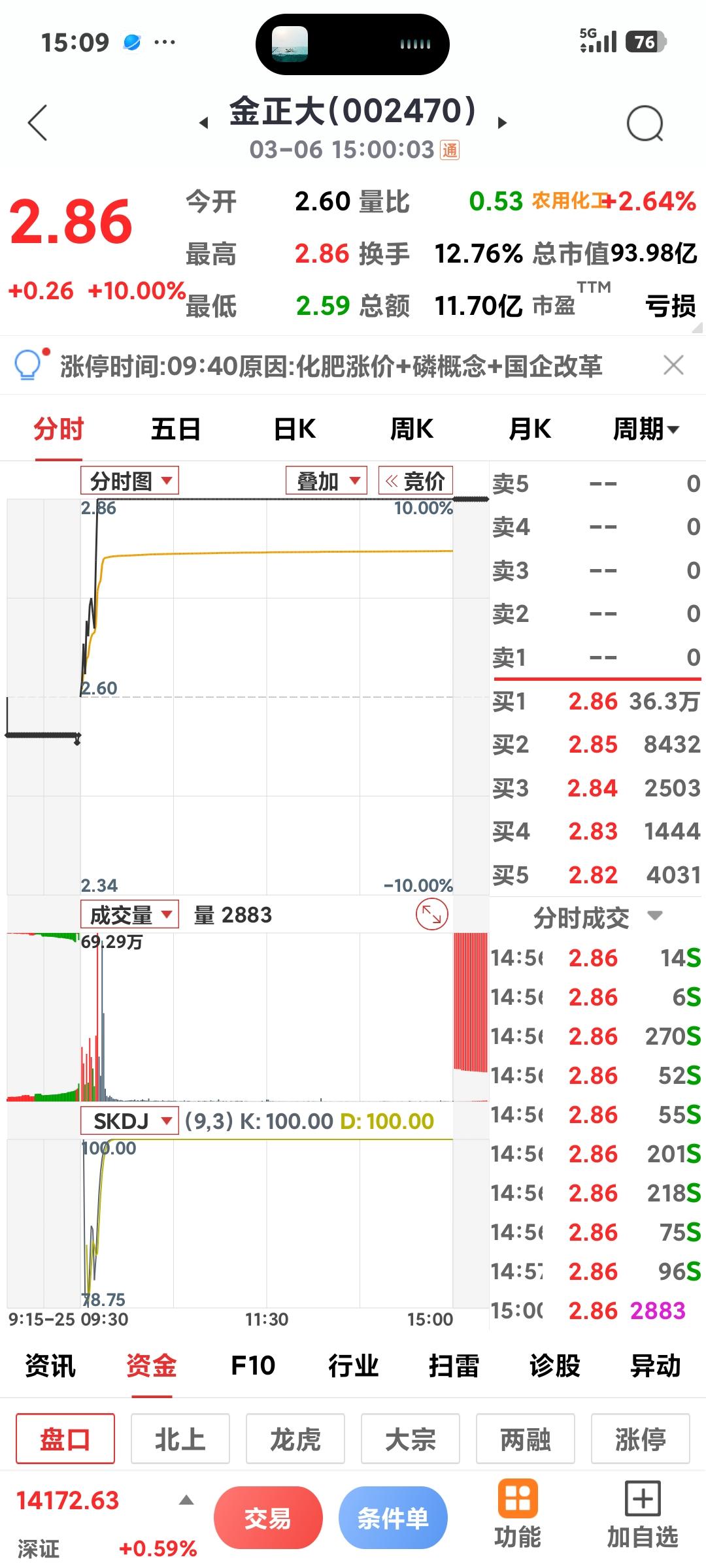 化工股掀起涨停潮 午后化工板块涨势扩大,得益于中东地区硫磺,铵和尿素生产中断,化学制品价格上涨。红宝丽,赤天化,金正大涨停,其它跟张!