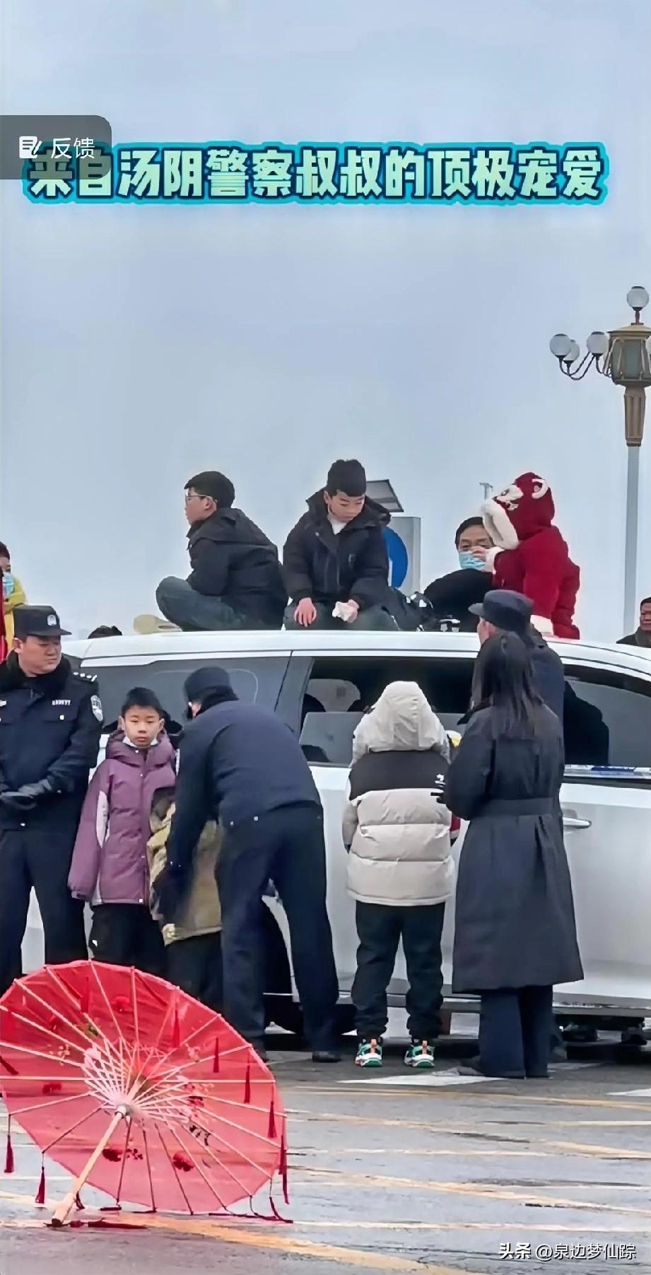 河南安阳汤阴县的闹元宵社火表演现场,上演了一幕格外暖心的画面。为了让孩子们能清晰地看到精彩的表演,当地公安民警主动将警车变身“最佳看台”,让孩子们坐在车顶,拥有了绝佳的视野。 孩子们坐在车顶,脸上洋溢着纯真的笑容,兴奋地向表演队伍挥手,尽情享受着这场民俗盛宴。而民警们则在车下全程守护,确保孩子们的安全。这一幕不仅让孩子们感受到了节日的快乐,更让在场的每一个人都体会到了来自人民警察的温情与担当,这份“专座”,是安全感,更是满满的爱。