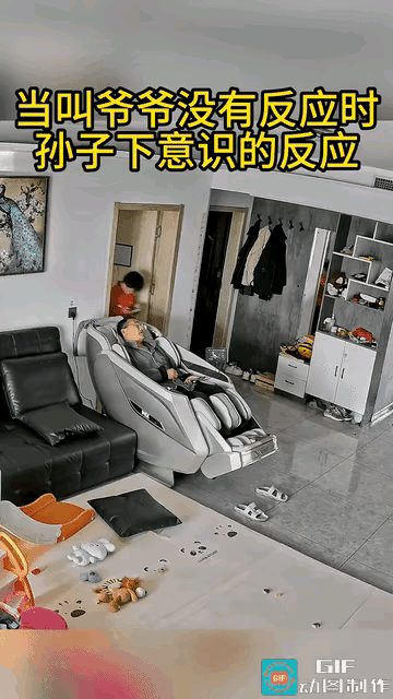 这一巴掌,打得又心疼又暖心! 小男孩问爷爷中午吃什么,喊了好几声都没回应,爷爷躺在按摩椅上一动不动,孩子当场就慌了。他凑过去试探呼吸,见爷爷还是没反应,急得直接抬手轻轻一巴掌,想把爷爷“打醒”。 爷爷被这一下惊醒,孩子又立马心疼起来,埋怨爷爷睡觉不吭声,还催着爷爷去床上睡,别着凉。 很多人看了又好笑又鼻酸。这不是调皮,是孩子最纯粹的害怕,是刻在骨子里的在乎。小孩子表达爱的方式很直接,怕失去,才会用最笨的办法去确认。 看似莽撞的一巴掌,藏着最真的牵挂。你小时候有没有过,因为担心家人而急得手足无措的时刻?孙子的暖心之举