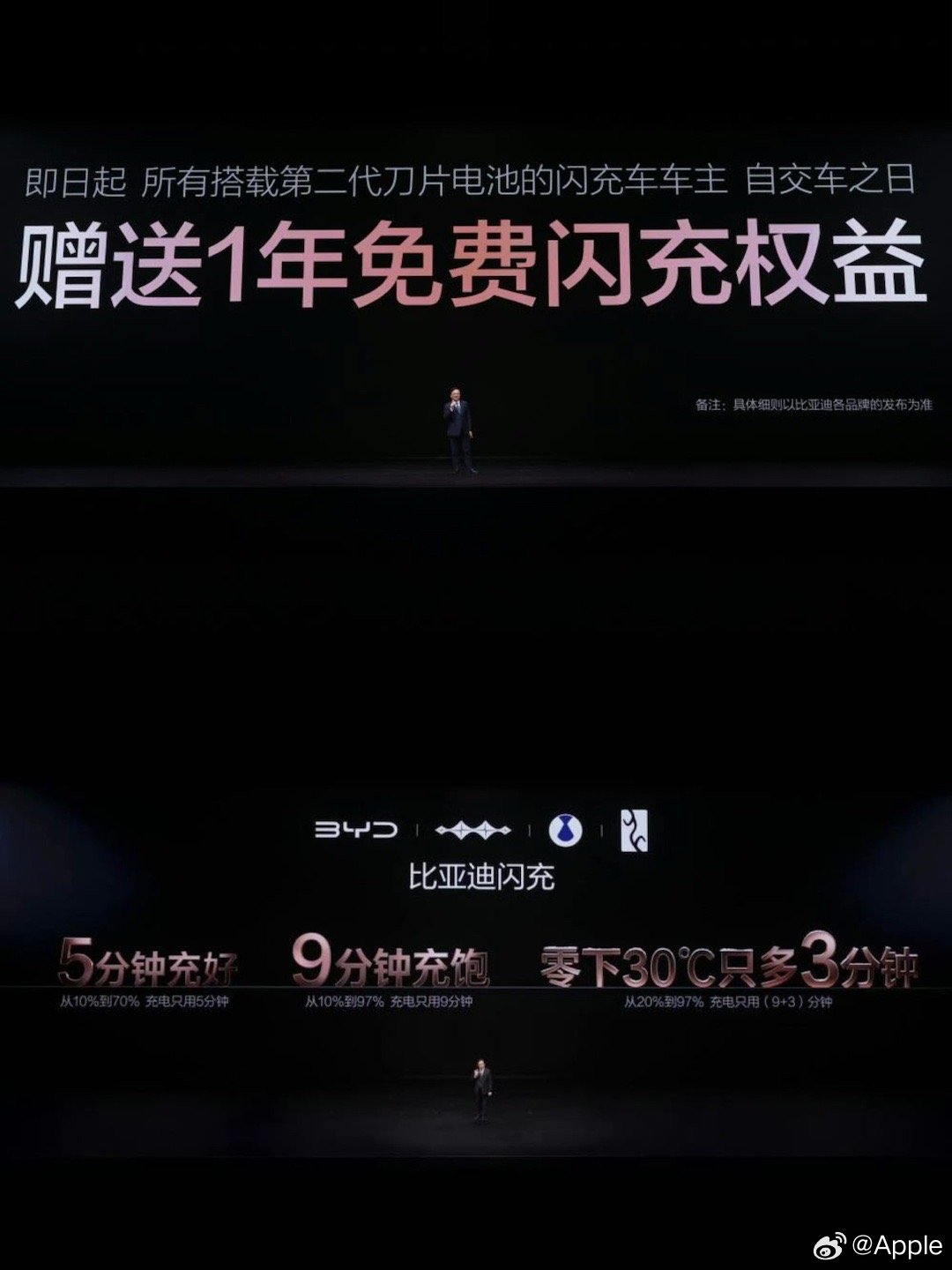 更厉害的是,闪充的同时,安全、续航、寿命全都拉满,行业顶尖水准,质保也特别安心。现场还发布了「闪充中国」战略,全国闪充站会快速落地,以后补能就像加油一样方便,出行再也不用焦虑。