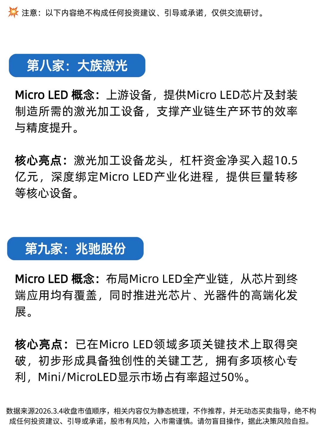 [斜眼R]本期我们梳理Micro LED全产业链,根据业务关联度和企业亮点,筛选出最新10家核心企业,供大家进一步研究参考。