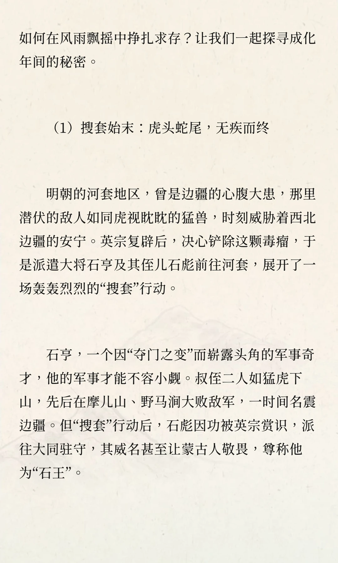 成化年间,赵辅平定瑶族叛乱,但大明朝已风雨飘摇。河套战事、长城修筑和绝道海路等决策,虽带来短暂安宁,却埋下隐患,最终导致明朝衰败。