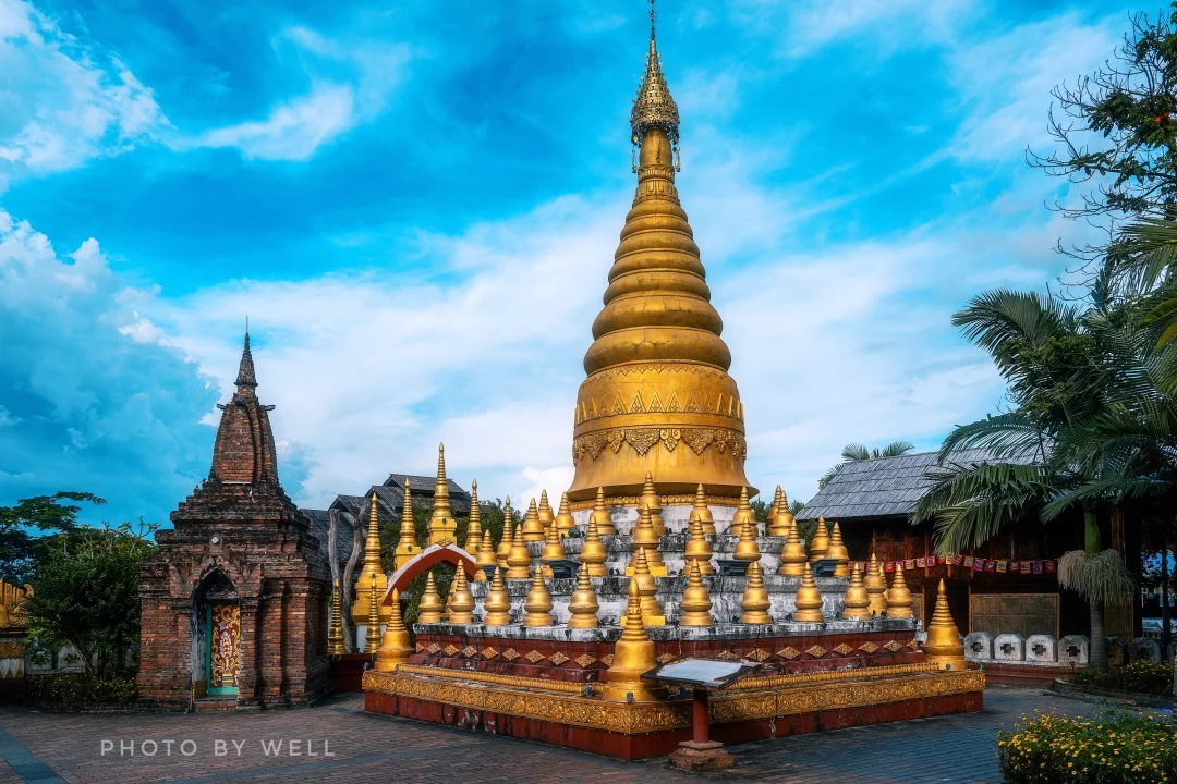 总佛寺(勐卯大金塔)在城郊的一个山头上,可以远眺缅甸,旁边有家佛学院,感觉还没建完,但金碧辉煌的佛塔还是极具东南亚风格。