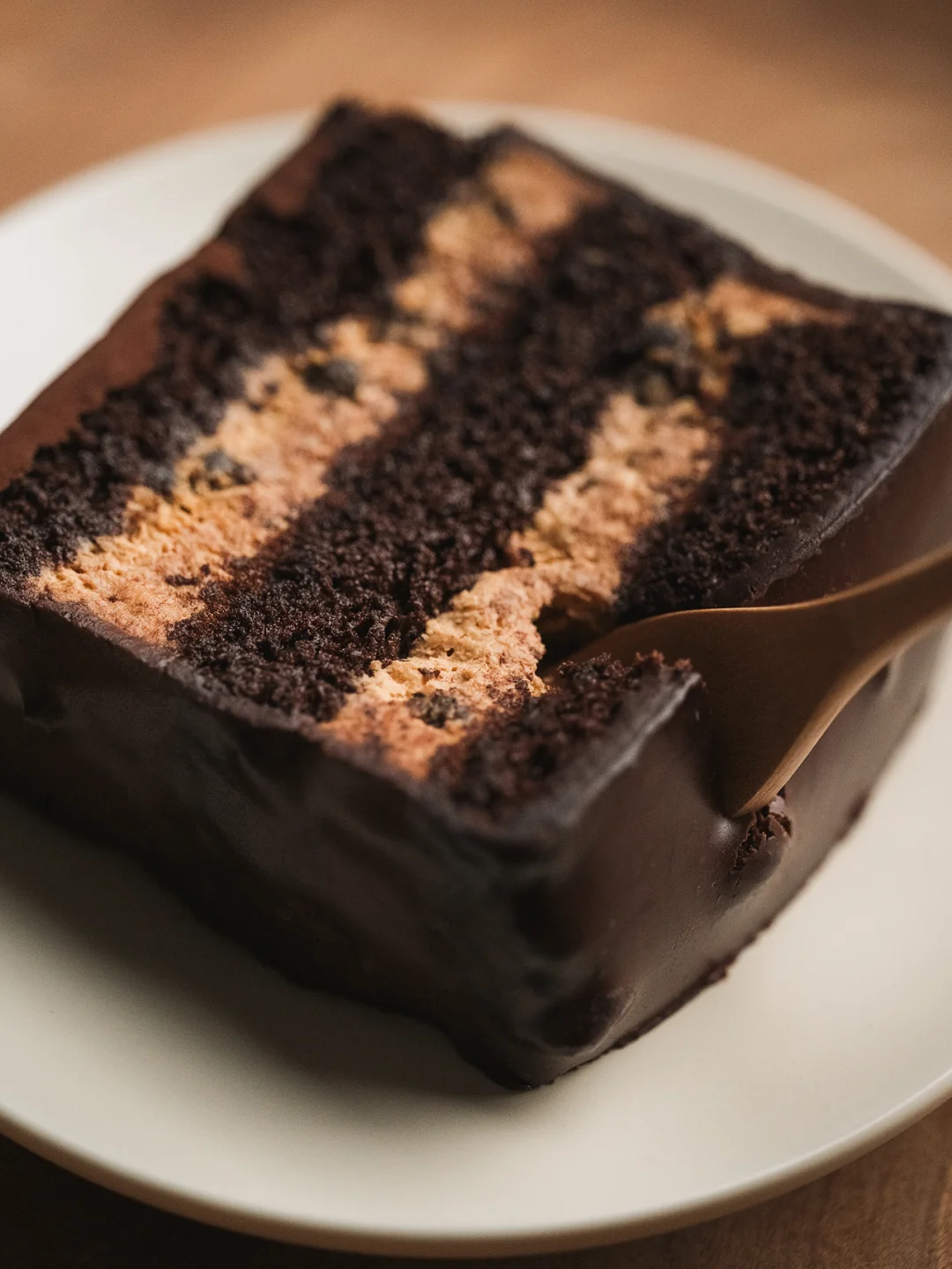 湿润浓香的可可蛋糕夹着醇厚的泰茶奶油