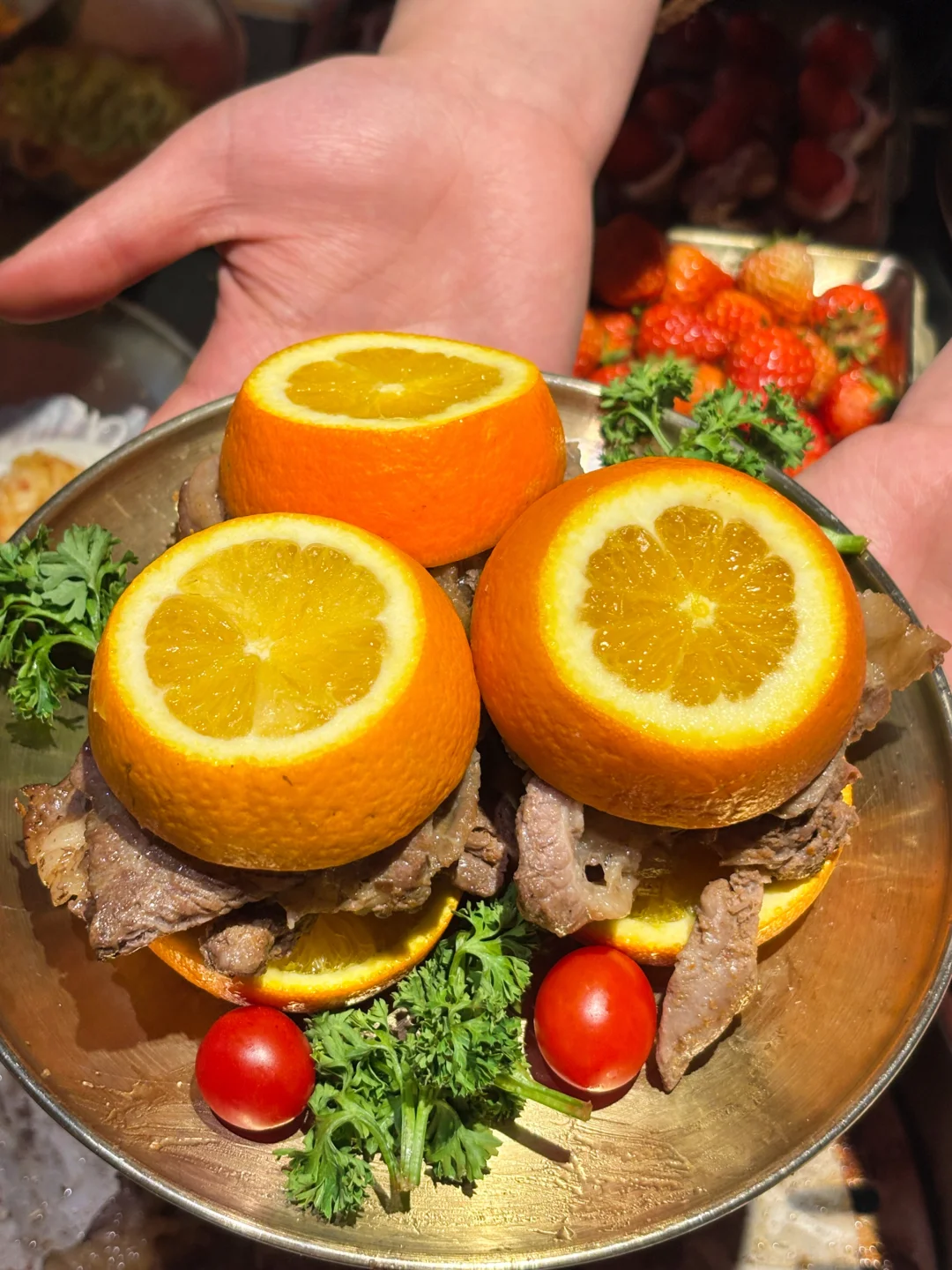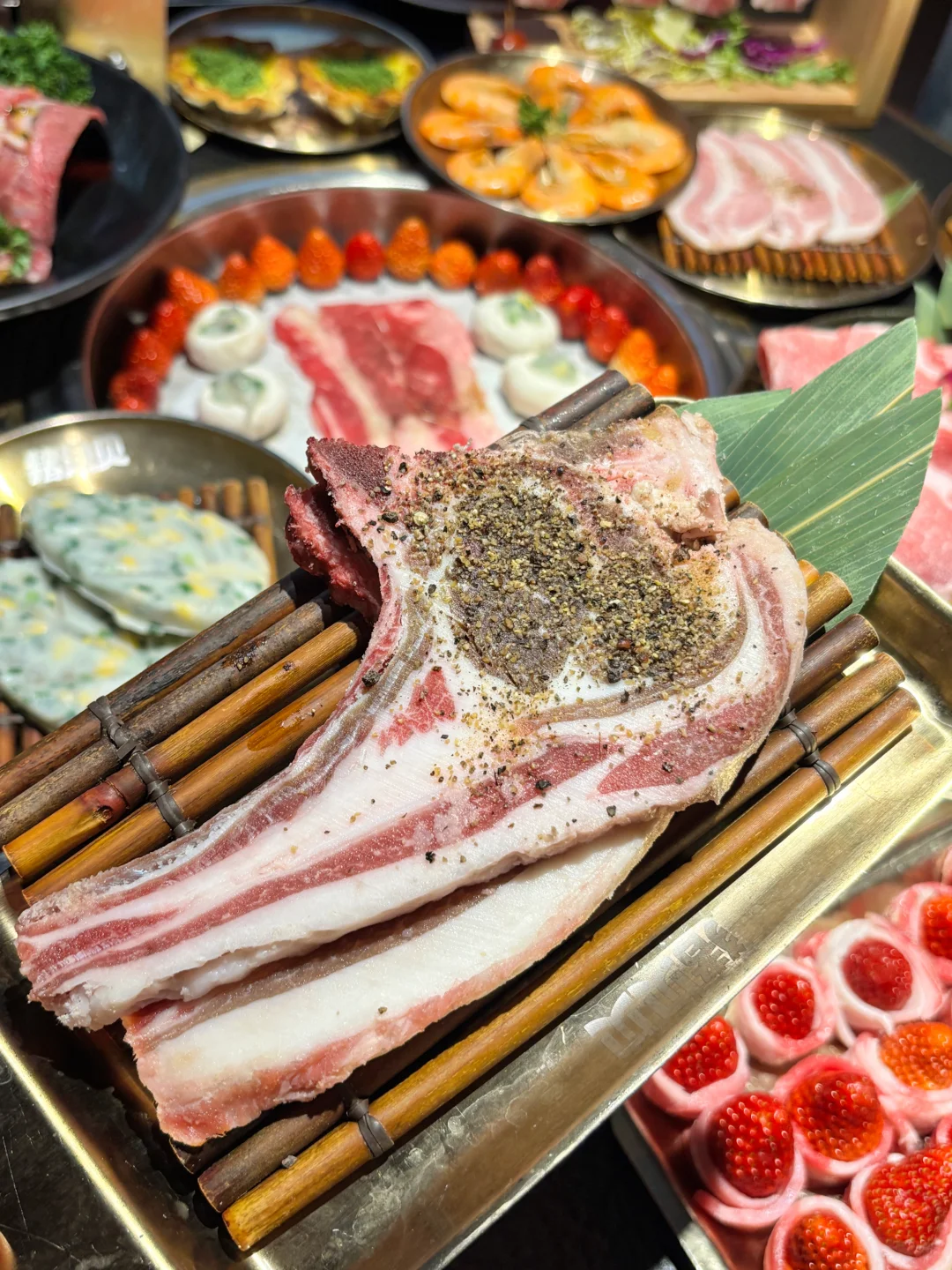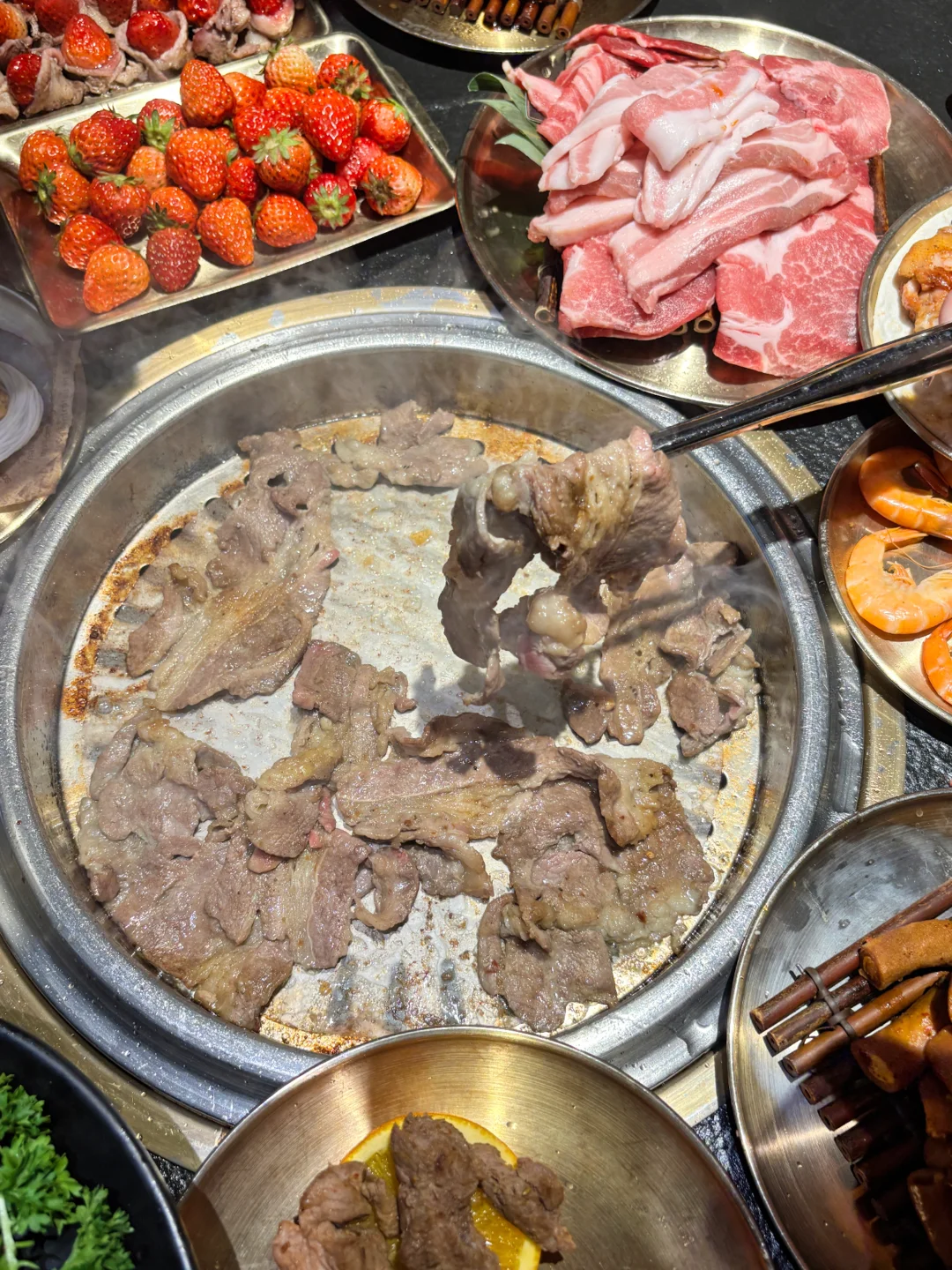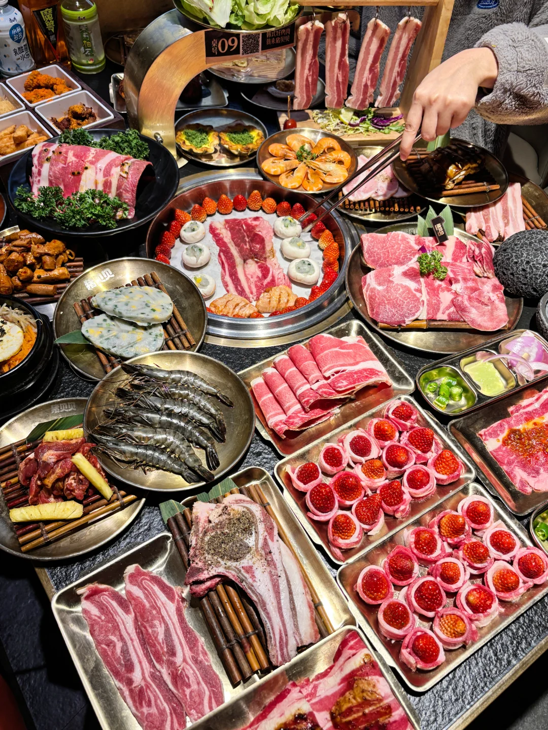 谁说吃高品质牛肉🐂很贵?猪贝贝这次趁着草莓🍓季直接搞了个安格斯牛肉节!人均几十块就能吃到高品质的安格斯牛肉,学生党也能轻松约起来!🙌 除了经典的原切安格斯肥牛,🥩还有秘制黑椒和百香果口味的!🍍百香果肥牛真的太上头了,果香超级清新,烤完肉香四溢,完全不腻!😋 真的被他们家的牛肉创意法吃法惊艳到了!自己DIY!卷上新鲜的菠萝🍍、草莓🍓一起烤,水果的汁水瞬间渗透进肉里,鲜嫩多汁,口感层次丰富到飞起!🤤 店里环境是黑金风,高级感满满但价格很接地气!🖤💛扫码点单懒人福音,不用等!这快乐谁吃谁知道!😋