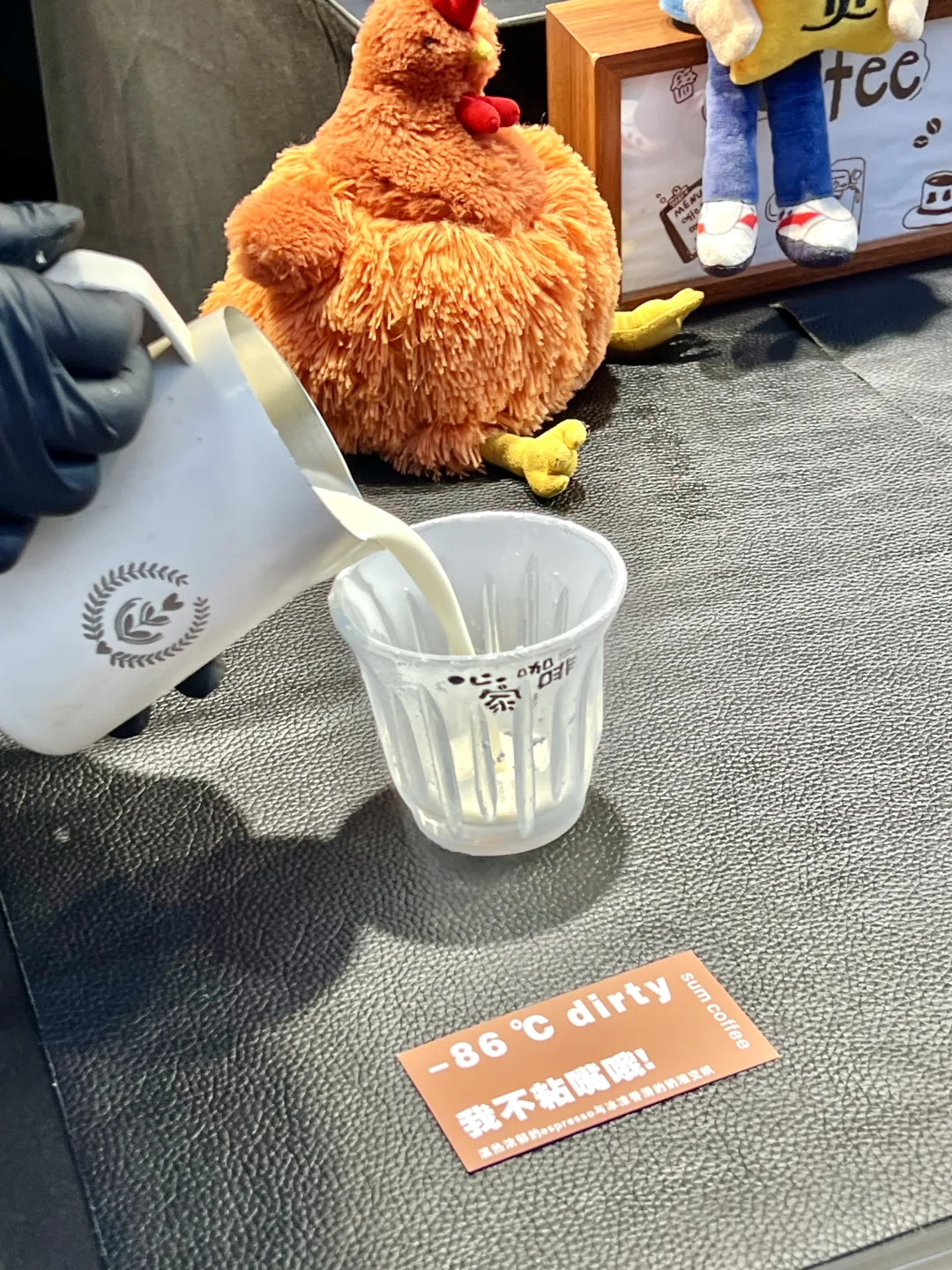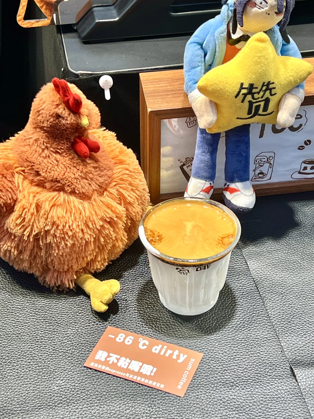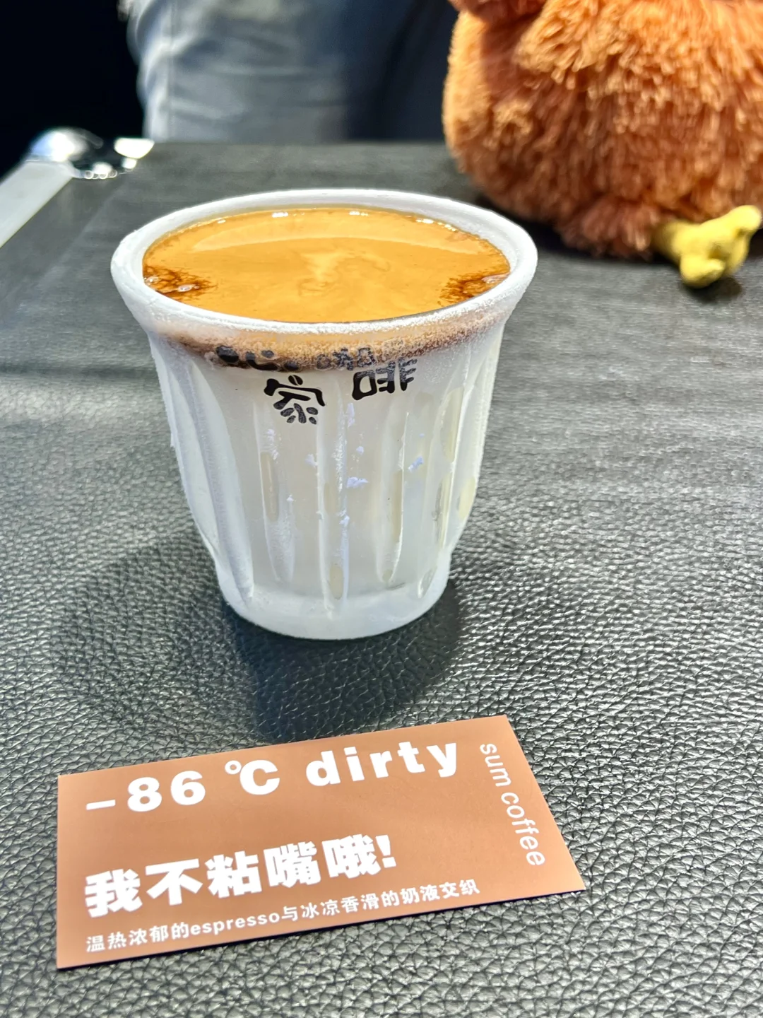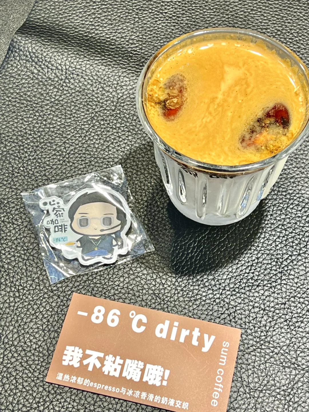 等了一年!!!终于又喝上了心家的冰杯dirty 那个冒着仙气儿的冰杯很吸睛了 -86℃冰杯Dirty 咖啡师拿出来的时候全是白雾 仪式感直接拉满 新出的草莓味真的太懂女生了! 杯壁上一层白白的霜,喝起来口感像在吃咖啡味冰淇淋,绵绵密密的。 咖啡香和草莓果香混在一起,一点都不甜腻,一口下去直接沦陷。 喝完还有惊喜彩蛋!那个-86°冰杯能直接带走,耐热又耐冷,带回家还能接着用,还有冰箱贴送,收集控狂喜! 江门咖啡节