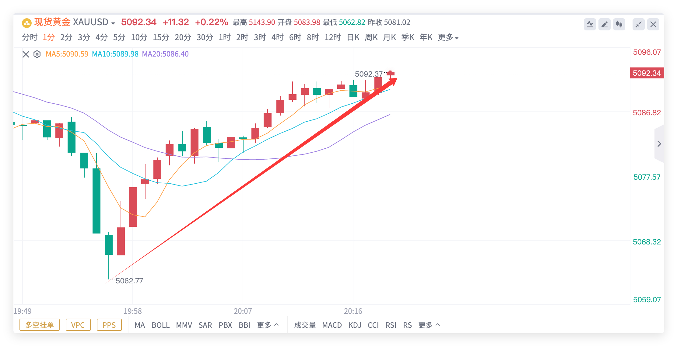 晚上这单几秒钟的进场时间,场外分享根本没时间行情突然三两分钟拉涨 10 美金,这种突发快涨,哪怕深哥实盘没有第一时间反应都根本没机会进场,结果有个伙伴,就因为去食堂打饭,活生生错过了这波机会。事后咱还调侃,这食堂的饭菜也太贵了!黄金金价金价波动