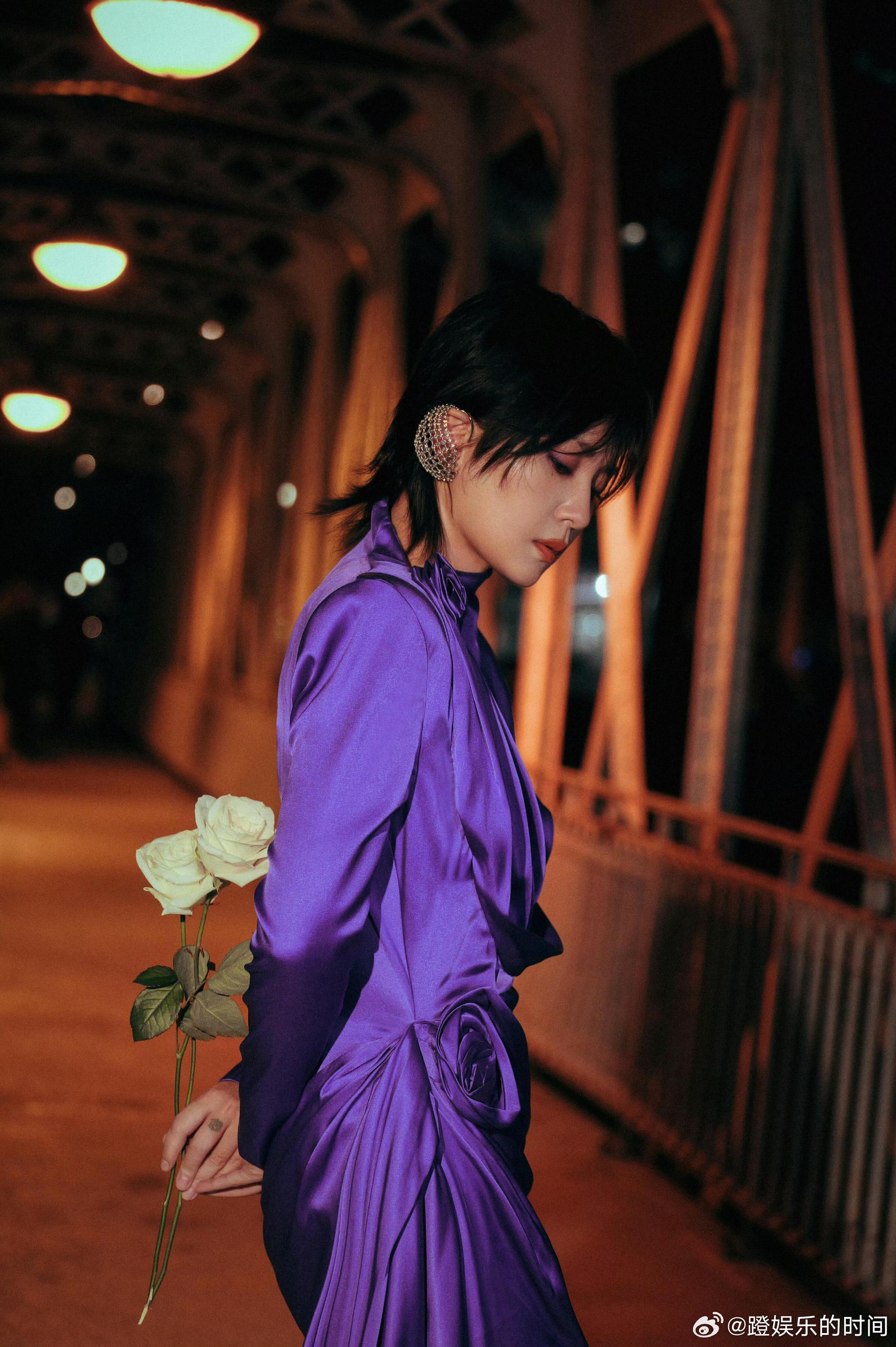 周笔畅巴黎秒变紫薯精周笔畅紫色长裙 周笔畅巴黎造型再出圈,紫色长裙尽显女神风范,